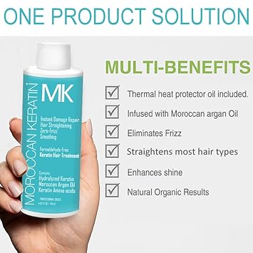 Mk Moroccan Keratin Express Straightening Formaldehyde-Free Brazilian Keratin Hair Treatment Kit Naturally Boosted Organic Looking Results Keratina Para Alisar El Pelo