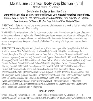 Moist Diane Natural Body Wash For Sensitive Skin Women & Men, Argan Oil Shower Gel With Pump For Hydration, Paraben-Free Body Soap For Baby & Kids, Sulfate & Silicone Free, Sicilian Fruits, 16.9 Fl Oz