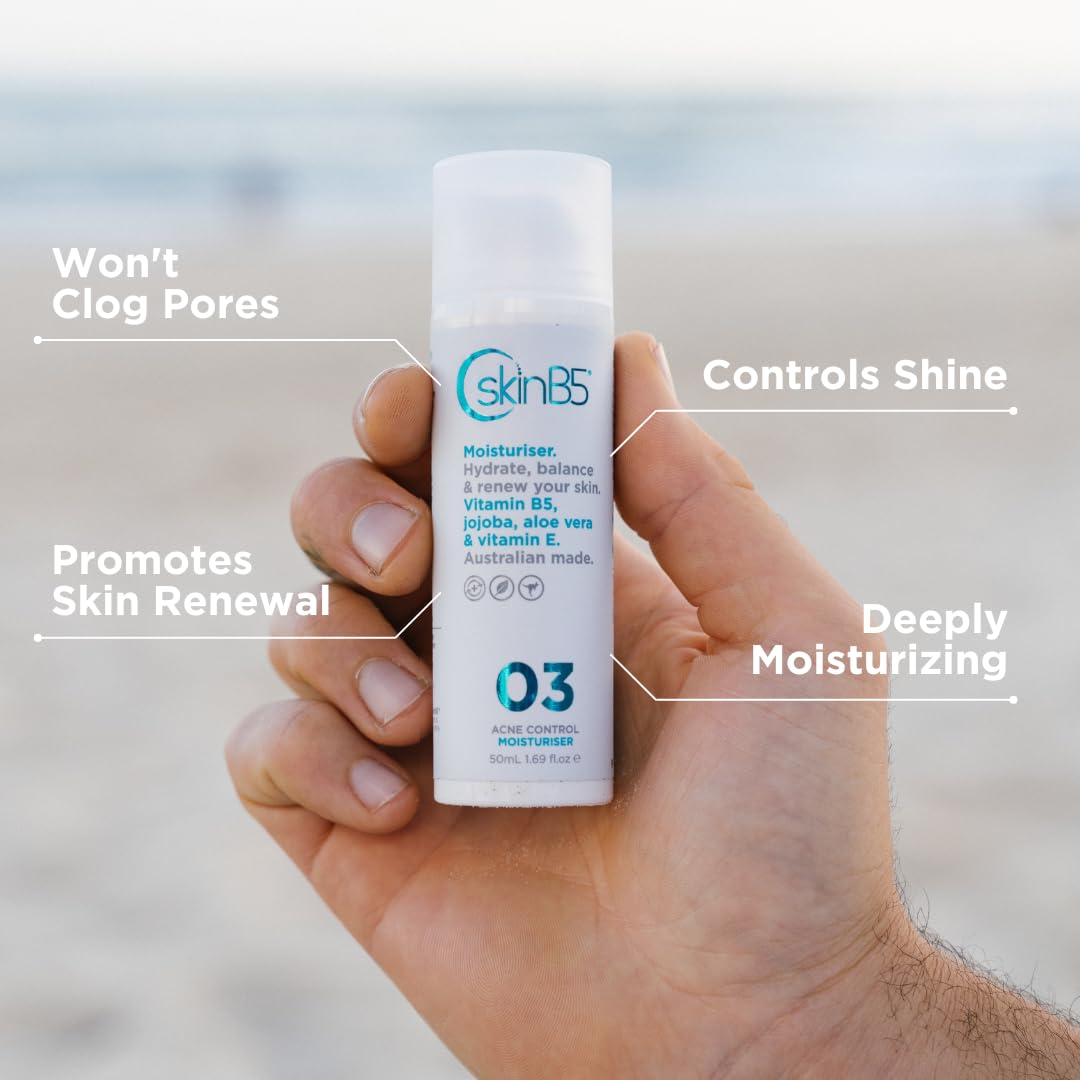About this item HYDRATE AND BALANCE: Discover the ultimate hydration for blemish-prone skin. Specially formulated with Vitamin B5, jojoba, aloe vera, and Vitamin E, our moisturizer deeply nourishes and restores your skin's natural defense. LIGHT & NON-GREASY: Our nourishing moisturizer offers deep hydration without the greasy feel. It heals, restores, and reinforces a healthy skin barrier, promoting resilience against breakouts. ANTIOXIDANT POWER: Specially formulated with antioxidants, our moisturizer is your skin's best friend, ideal for those prone to irritable breakouts. Embrace the soothing and regenerative power of SkinB5. NATURAL DEFENSE RESTORED: Reclaim your skin's natural defense with our unique hydrating formula. Prevent breakouts while providing the deep moisture your skin craves. Experience the SkinB5 difference. GLOWING COMPLEXION: Unlock a radiant complexion with SkinB5. Our moisturizer hydrates, balances, and renews your skin, leaving you with a healthy, luminous glow. See more product details,HYDRATE AND BALANCE: Discover the ultimate hydration for blemish-prone skin. Specially formulated with Vitamin B5, jojoba, aloe vera, and Vitamin E, our moisturizer deeply nourishes and restores your skin's natural defense,LIGHT & NON-GREASY: Our nourishing moisturizer offers deep hydration without the greasy feel. It heals, restores, and reinforces a healthy skin barrier, promoting resilience against breakouts,ANTIOXIDANT POWER: Specially formulated with antioxidants, our moisturizer is your skin's best friend, ideal for those prone to irritable breakouts. Embrace the soothing and regenerative power of SkinB5,NATURAL DEFENSE RESTORED: Reclaim your skin's natural defense with our unique hydrating formula. Prevent breakouts while providing the deep moisture your skin craves. Experience the SkinB5 difference,GLOWING COMPLEXION: Unlock a radiant complexion with SkinB5. Our moisturizer hydrates, balances, and renews your skin, leaving you with a healthy, luminous glow