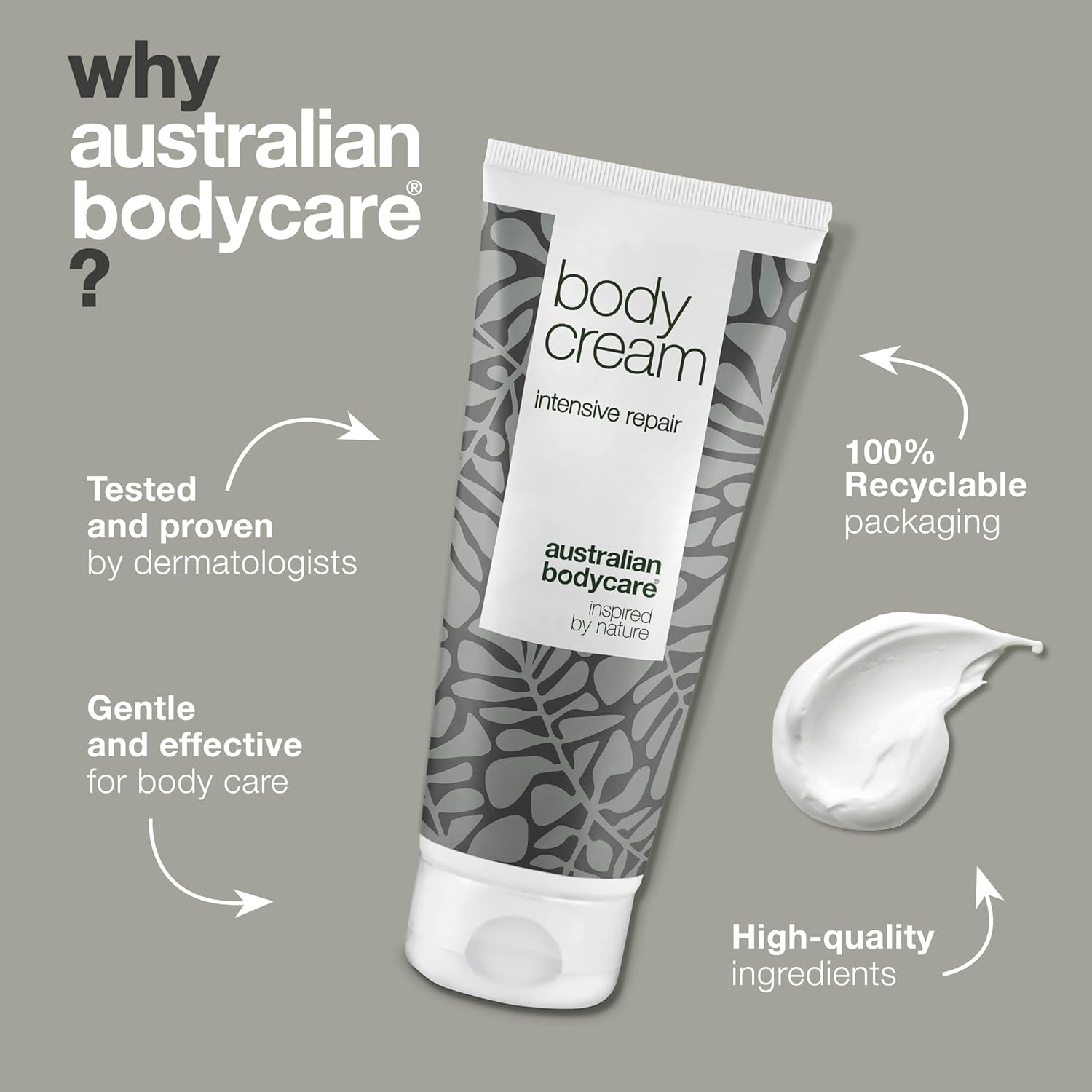 About this item ?? Made for: Struggling with very dry, itchy, or damaged skin When your skin loses moisture, it becomes irritated and vulnerable. Our intensive moisturizing cream nourishes and restores balance, helping you get rid of discomfort. ?? What it does: The nourishing formula with Witch Hazel and Allantoin soothes dry and damaged skin, reduces irritation, and provides deep hydration. It absorbs quickly and is non-greasy, making it perfect for daily use. ?? Why it’s special: Enriched with Natural Actives to protect against bacteria, promote healing, and restore moisture balance. Combined with Witch Hazel and Allantoin, this cream ensures optimal care and protection for even very dry skin. ?? Results: You’ll feel softer skin immediately after application. With daily use, visible improvements in dryness, redness, and irritation appear within 1-3 weeks. ?? How to use: Apply to clean, dry skin twice daily or as needed. Massage gently into dry areas like elbows, knees, hands, and heels. For best results, use with Australian Bodycare Body Lotion. › See more product details,?? Made for: Struggling with very dry, itchy, or damaged skin When your skin loses moisture, it becomes irritated and vulnerable. Our intensive moisturizing cream nourishes and restores balance, helping you get rid of discomfort,?? What it does: The nourishing formula with Witch Hazel and Allantoin soothes dry and damaged skin, reduces irritation, and provides deep hydration. It absorbs quickly and is non-greasy, making it perfect for daily use,?? Why it’s special: Enriched with Natural Actives to protect against bacteria, promote healing, and restore moisture balance. Combined with Witch Hazel and Allantoin, this cream ensures optimal care and protection for even very dry skin,?? Results: You’ll feel softer skin immediately after application. With daily use, visible improvements in dryness, redness, and irritation appear within 1-3 weeks,?? How to use: Apply to clean, dry skin twice daily or as needed. Massage gently into dry areas like elbows, knees, hands, and heels. For best results, use with Australian Bodycare Body Lotion