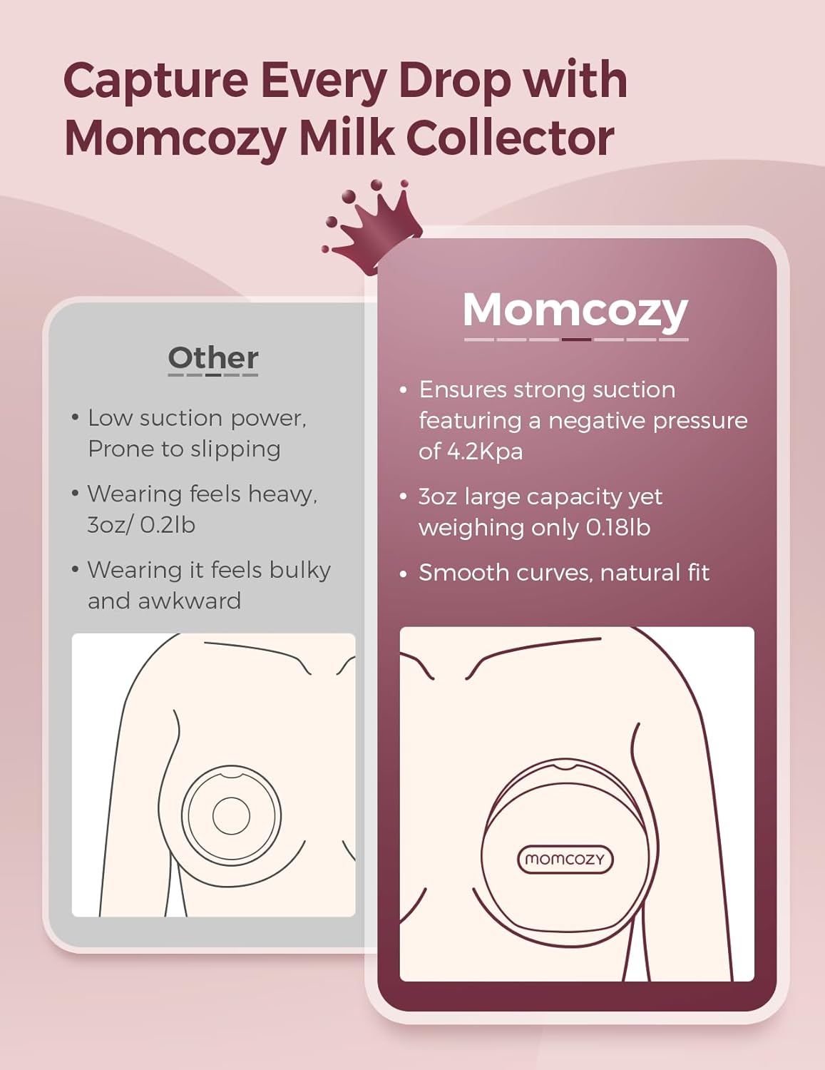 Save More Milk - Weighing Only 0.18Lb (82G) And Holding Up To 3Oz (90Ml), Momcozy Milk Collector Reduces The Need For Frequent Changes, Which Is Ideal For Moms With A Higher Milk Supply. Its 4.2Kpa Pressure Creates A Better Seal, Improves Suction, And Reduces Wasted Milk