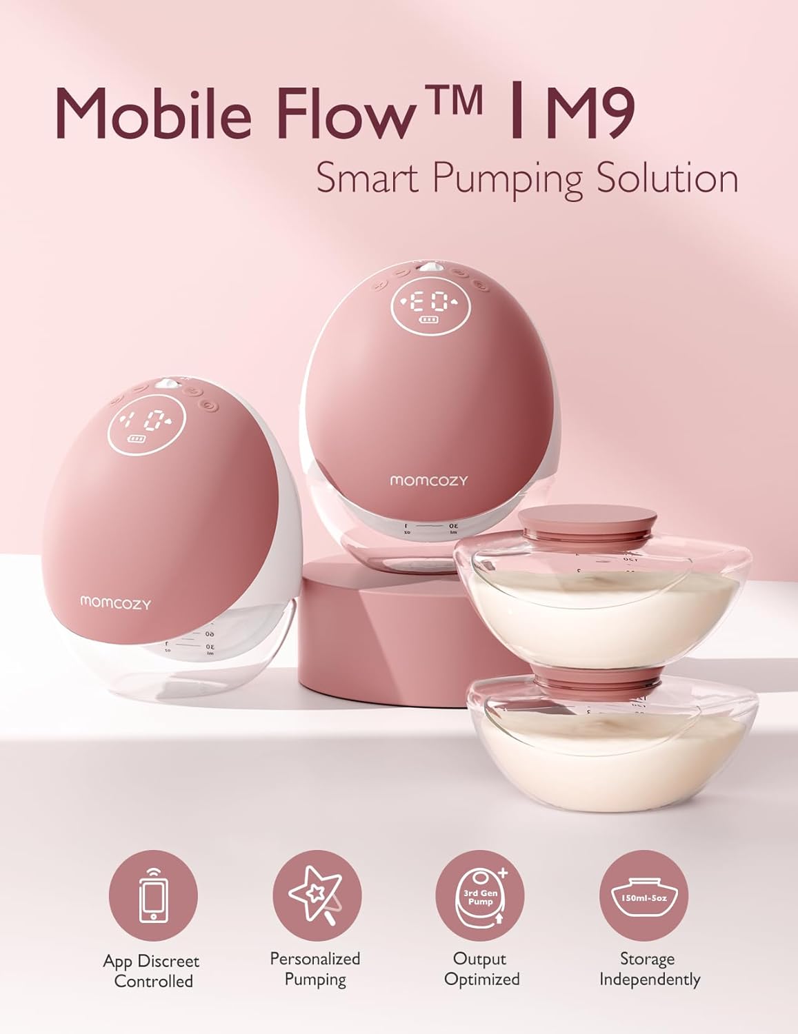 Smart Pumping: Control The Mobile Flow Via The "Momcozy" App To Start/Pause/Countdown Pumping And Switch To Different Pumping Settings. No Need To Reach Into Your Bra! Record Every Breastmilk Yield To Track Your Pumping History. Know Yourself Better, Pump On Your Terms10Stronger & Quieter: Our 3Rd Gen Pump Boasts An Upgraded Pumping Efficiency With Reduced Noise. It Supports Up To 15 Suction Levels Under Every Pattern. Enjoy A More Comfortable, Stronger Suction And Efficient Pumping Experience With Momcozy Mobile Flow?10Multi-Modes: Select From 3 Regular Modes (Stimulation+ Expression+Mixed) On The Pump Motor. You Can Also Experience The Personalized Modes And 2 Specialist Modes (Milk Relief+Milk Boost) From Your Phone. Craft Your Rhythm To Suit Your Comfort And Preference. You Will Always Find Your Optimal Mode!10More Fit & Discreet: Mobile Flow Breast Pump Adopts Doublefit Flange Combining Soft And Hard Silicone To Ensure Better Comfort And Safety. The Drop-Shaped Design Of The M9 Breast Pump Fits Seamlessly In The Pump Bra, Allowing Moms To Pump With Total Privacy10Convenient Storage: Made Of Tritan, A Safe, Durable, And Eco-Friendly Material. The Stackable Milk Collector Can Store Breastmilk Independently. Just Seal With The Silicone Lid And Put It In The Bag Or Refrigerator. No Need To Transfer Into The Breastmilk Bags. One Step Store, Keep Milk Clean10