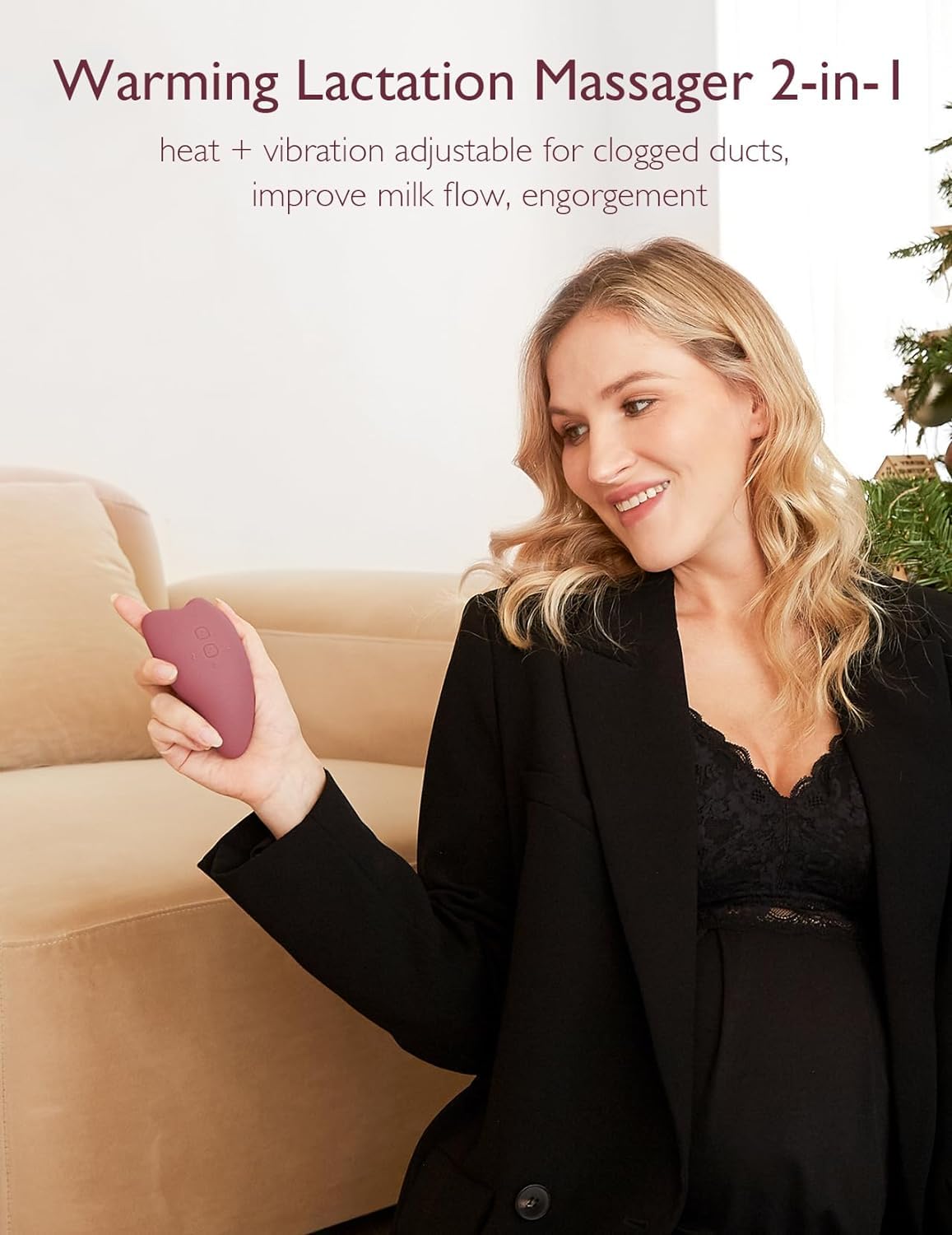 Breastfeeding Saver - Use With A Breast Pump To Help Empty Your Breasts And Save Pumping Time. Easy To Relieve Breastfeeding Challenges Such As Engorgement, Clogged Ducts, Tenderness, Etc. As One Breastfeeding Essential, The Lactation Massager With Heat Can Also Help Soften The Breast And Improve Latching