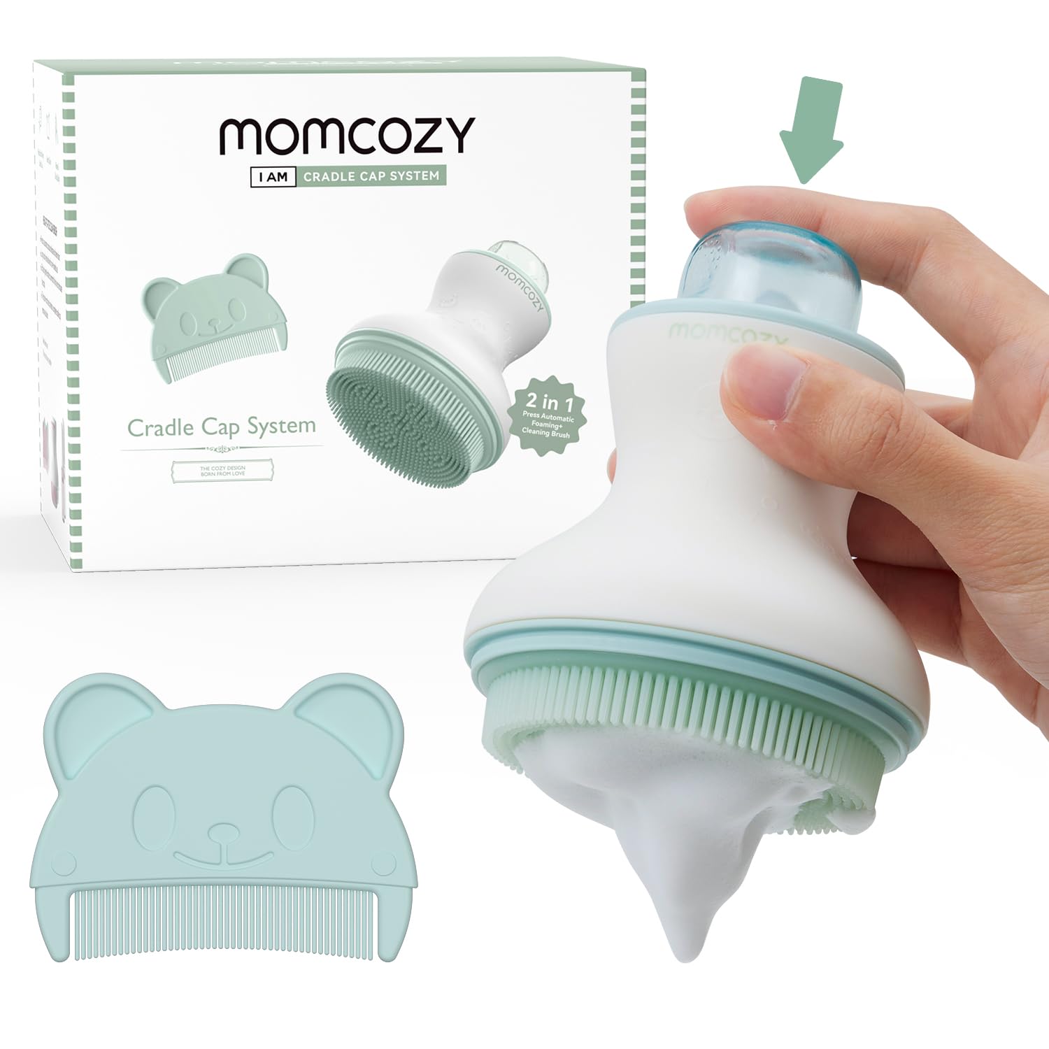 Baby Bath Essential - Momcozy Baby Cradle Cap Brush System Contains A Cradle Cap Brush With Bubbler, Pour You Body Wash Into The Bottle And Press To Foaming, Making The Baby Bath Much More Easily, Newborn Essential, Baby Shower Gift