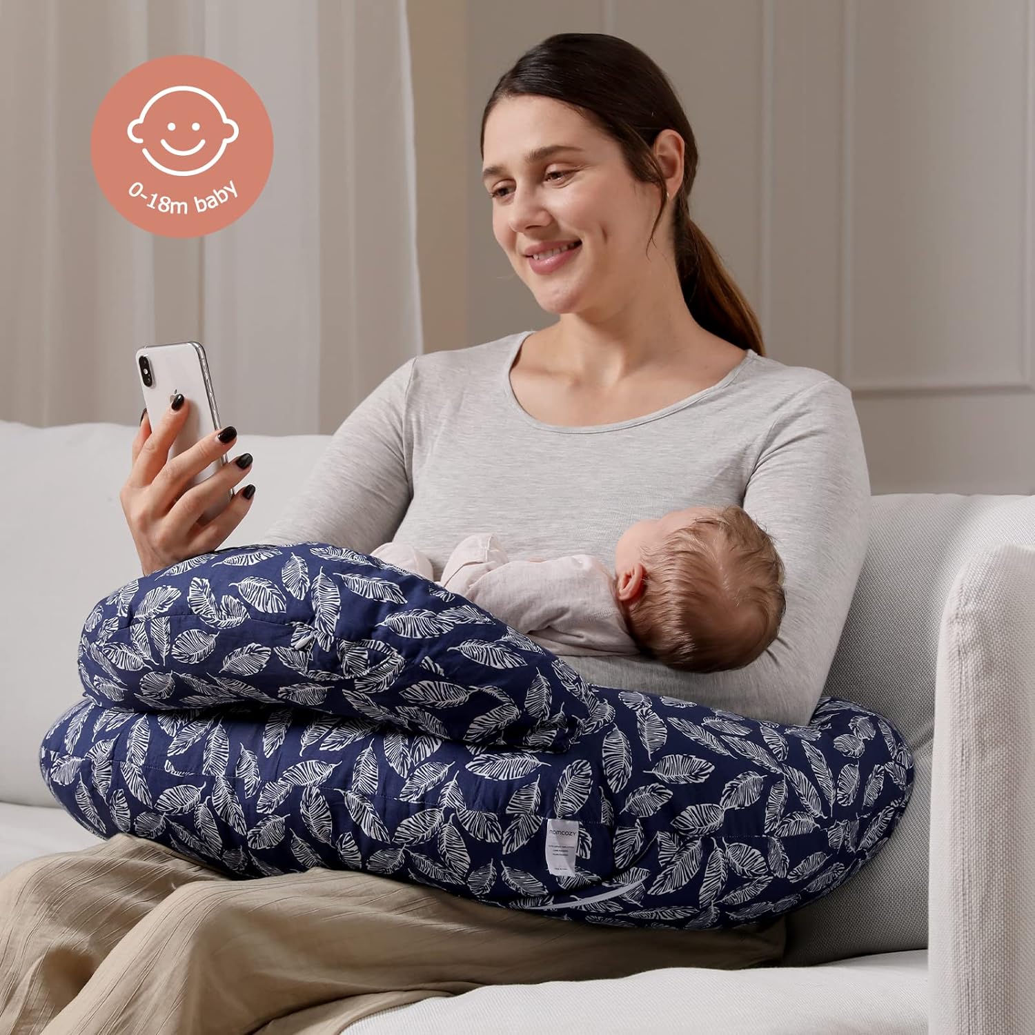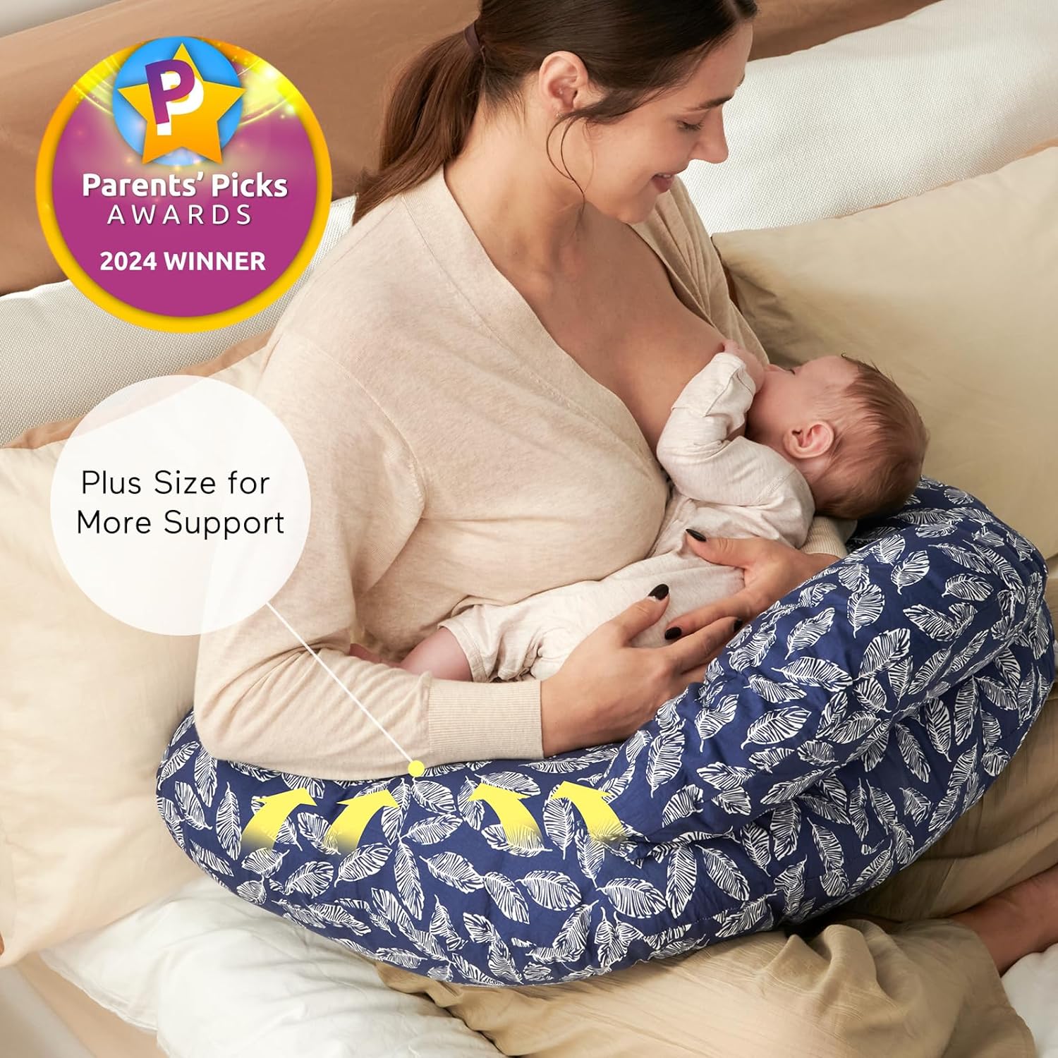 Momcozy Original Nursing Pillow And Positioner - Plus Size Feeding Pillow | Breastfeeding, Bottle Feeding, Baby Support | With Adjustable Waist Strap And Removable Cotton Cover, Navy Blue