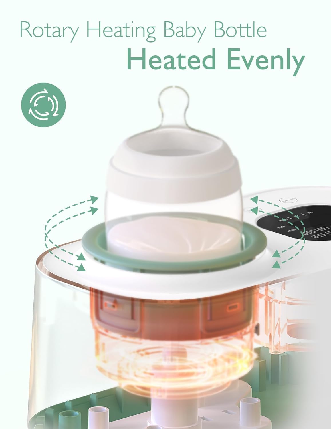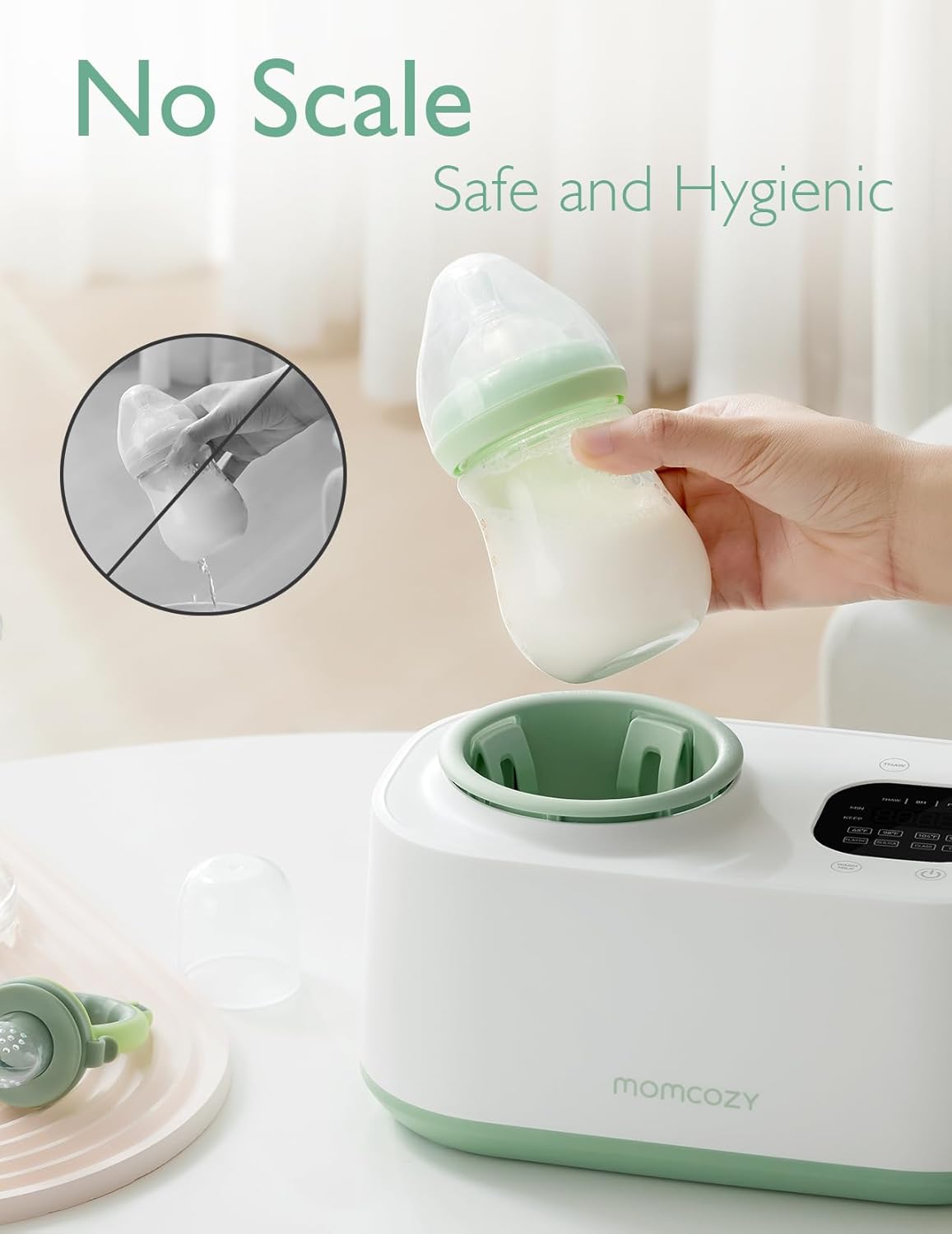 Rotating Heating: The Momcozy Waterless Bottle Warmer Is The First On The Market To Shaking Warm Milk. It Simulates The Shaking Of A Baby Bottle, Avoiding Milk Clumps And Safely Heating Breast Milk To The Ideal Temperature. Ideal For Busy Parents Who Want Safe Heating For Their Baby'S Milk10Waterless Warming: The Three-Dimensional Air Circulation Warm Milk Design Heats The Bottle Without The Need For Water, Avoiding The Problems Of Limescale, Providing A Clean Environment For Heating The Baby Bottle. Perfect For Parents Looking For A Hassle-Free And Safe Way To Heat Their Baby'S Milk10Four Temperature Settings: Our Bottle Warmer Does Not Have The Traditional Default Temperature Setting. It Offers 4 Temperature Options (68?, 98?, 104?, 110?), Tailored To Different Needs. The Perfect Solution For Parents Seeking Customizable Heating Options For Their Baby'S Milk10Fits Most Of Bottles: We Offer Two Sizes Of Shaking Accessories For Replacement. The 53 * 64Mm Size Is Suitable For Narrow Bottle Fixation, And The 65 * 73Mm Size Is Suitable For Wide Bottle Fixation, Making The Waterless Bottle Warmer Fitting Most Of Bottles On The Market. Please Note?It Is Not Suitable For Boon & Mam Baby Bottles10Easy To Use: Clear Panel Settings, Simple Operation Steps, And Intelligent Memory Function Ensure Easy To Use. An Intuitive And User-Friendly Design That Simplifies The Bottle-Heating Process10