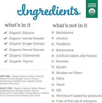 No Benzocaine, No Belladonna, No Alcohol Or Parabens, No Numbing Or Cooling, Non-Gmo, Free Of Top 8 Allergens, No Artificial Color And Flavors: We Believe Simpler Is Better, So We Include Only What Your Child Needs And Never Anything They Don'T