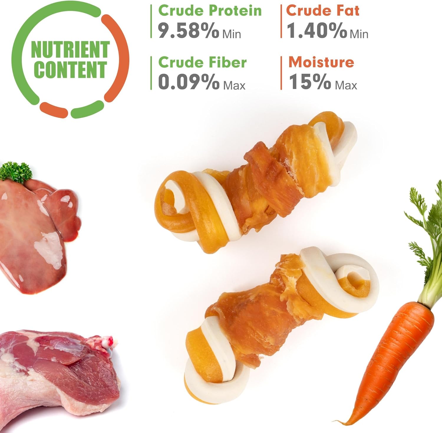 Mon2Sun 2.5" Rawhide Free Dog Treats With Mixed Vegetables, Chicken Wrapped Mini Knot Bones For Small Dogs, Healthy Dog Snakcs For Balanced Nutrition, 21.2Oz