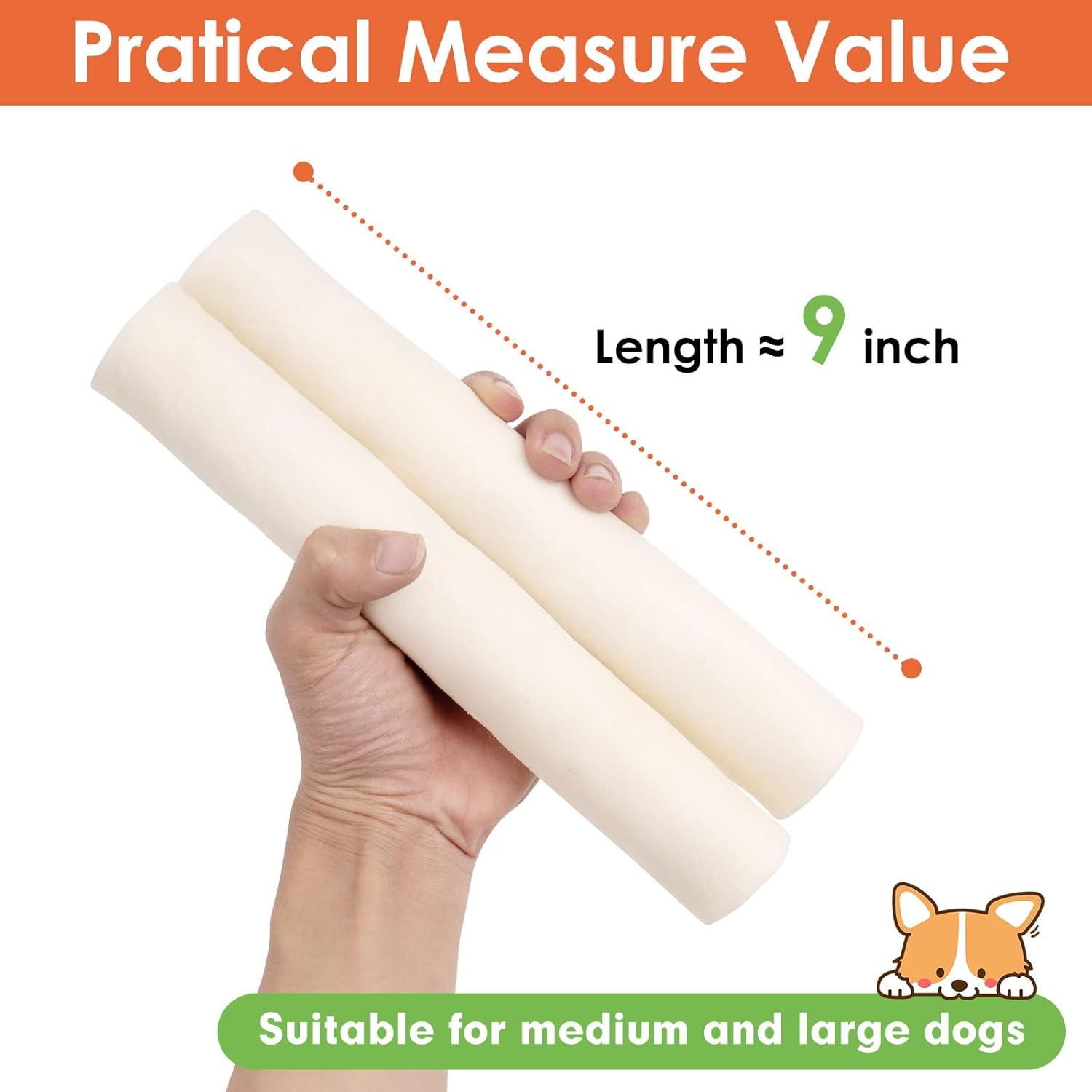 [Product Information] Dog Rawhide Roll Is 9 Inches In Length. It Is More Suitable For Large Dogs. The 26.46 Ounce Per Pack Has 6 Pieces