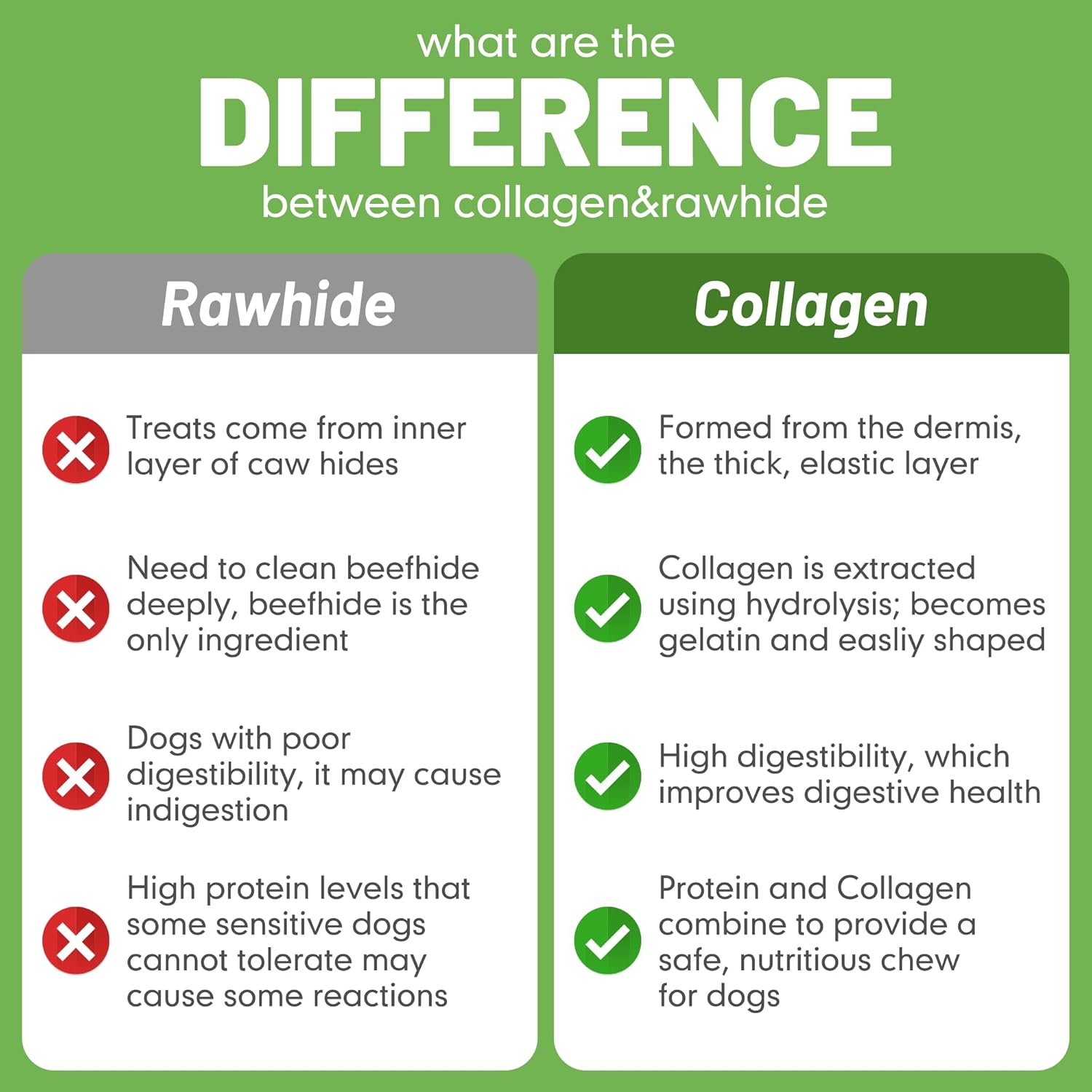 [Source Of Ingredients] Collagen Comes From The Inner Layer Of Skin Called The Corium, Which Is Better And Safer Than Traditional Rawhide. Low Fat And High Protein. Nutrition And Easy To Digest