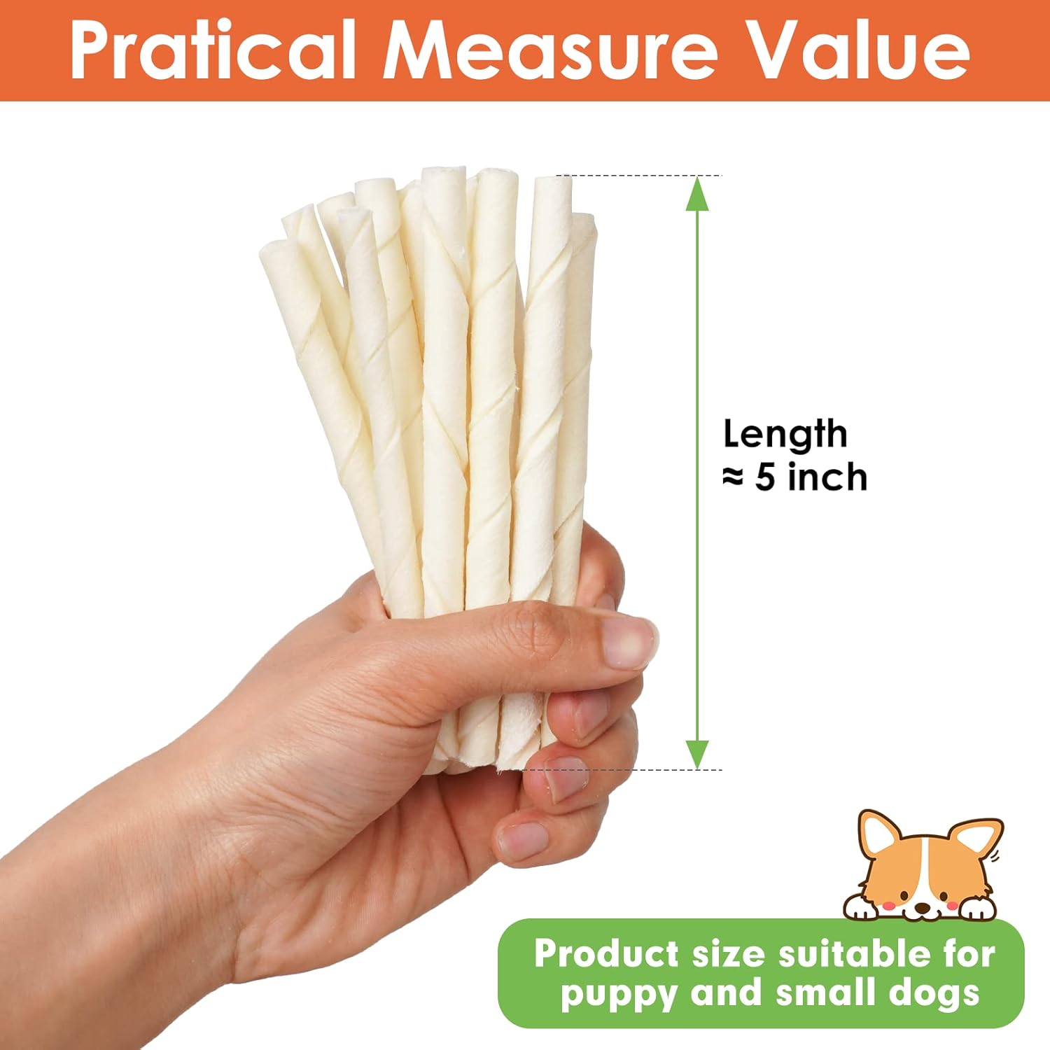 Mon2Sun Dog Rawhide Twist Sticks Natural 5 Inch Thin Sticks Rawhide Chews Dog Treats For Puppy And Small Dogs 60 Count