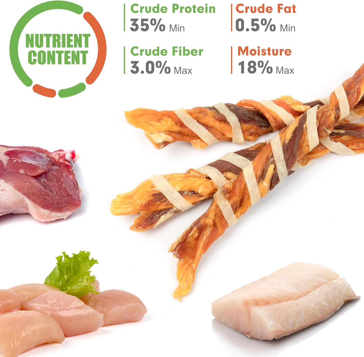Mon2Sun Dog Treats, Triple Flavor Jerky Twist Sticks, 4.5-5 Inch Chicken Duck And Codfish Sticks Dog Chews For Small Dogs, Healthy Dog Snacks, 10.58 Oz (30 Count-Pack Of 1)