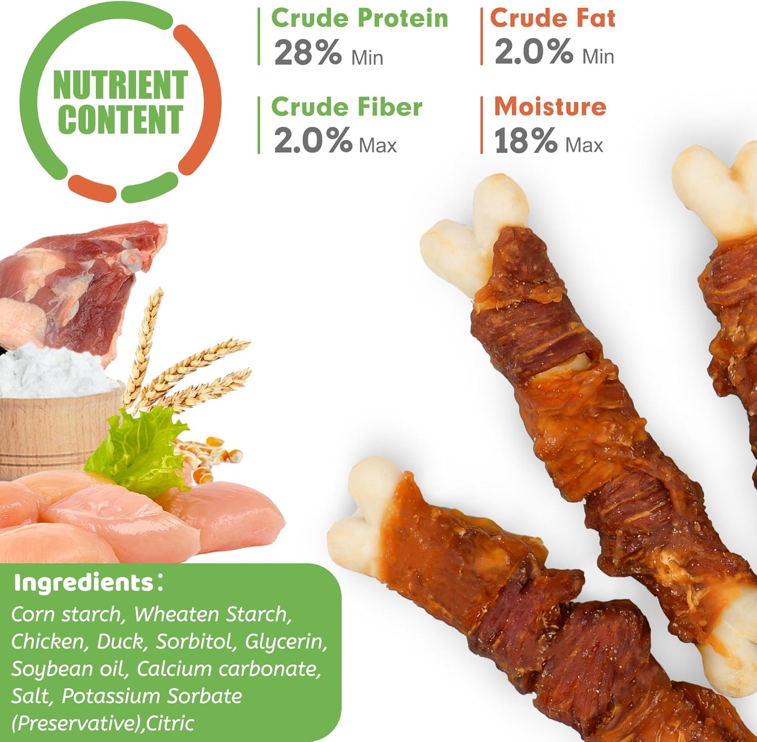 [Ingredients] Made With Real Chicken And Duck, Wrapped Around A Calcium Bone, Helpful To Calcium Supplement. Rawhide Free Dog Treats Are Easier To Digest