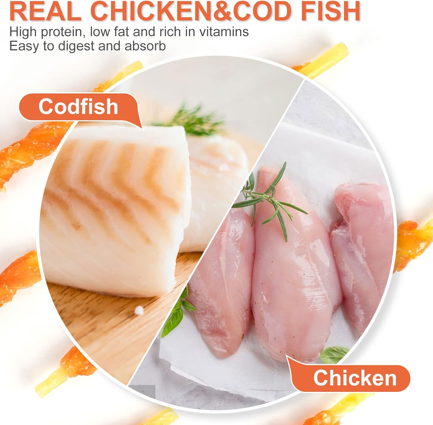 Natural Ingredients: Real Chicken Breast Wrapped Around A Cod Sticks Low In Fat And High In Protein; Cod Sticks Also Contains Omega 3 And Vitamins Which Promotes Shiny Coats And Skin Health Among Other Benefits