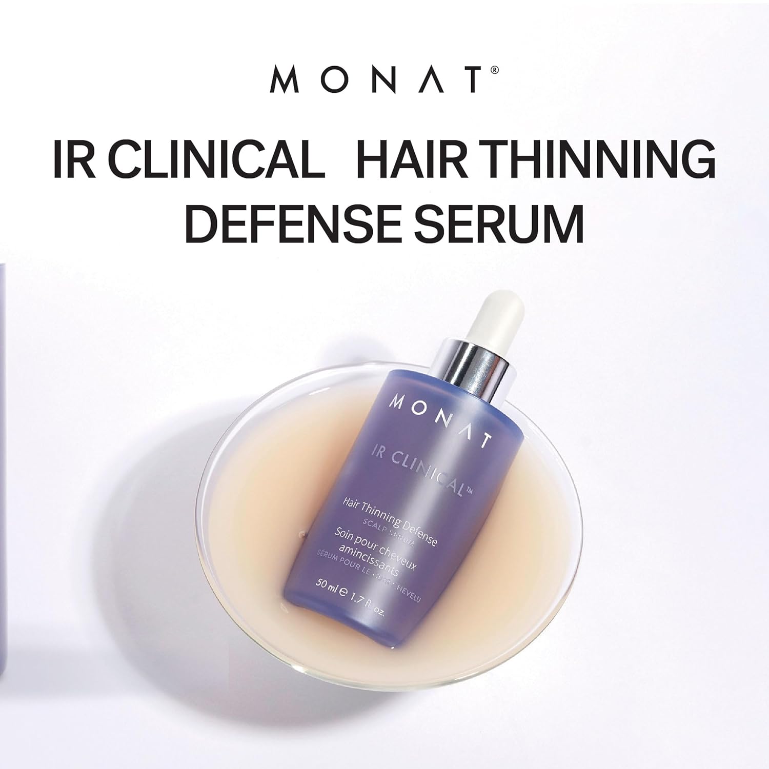 About this item [AWAKEN YOUR HAIR FOLLICLES] –The Monat IR Clinical Hair Thinning Defense Scalp Serum is specifically designed to address the root causes of hair thinning, targeting the scalp directly to nourish hair follicles, stimulate growth, and fortify existing hair. [INNOVATIVE FORMULA] – Featuring a blend of powerful natural ingredients including melatonin, caffeine, and bioactive D-biotin, this hair thickening serum works to stimulate the follicles and strengthen hair from root to tip. [NATURAL AND SAFE] – MONAT IR Clinical Hair Thinning Defense Scalp Serum is naturally-based and features hair thickening technology that helps hair grow stronger and appear fuller. [VISIBLE RESULTS] – This lightweight, non-greasy serum immediately reduces breakage and reduces hair fall by 92%. [AWARD-WINNING, VEGAN FORMULAS] – MONAT is a leader in Premium Beauty, offering 100% vegan and cruelty-free products. Free from sulfates and parabens, MONAT's clean beauty formulas have earned multiple accolades, making them a trusted choice for healthy, ethical haircare. › See more product details,[AWAKEN YOUR HAIR FOLLICLES] –The Monat IR Clinical Hair Thinning Defense Scalp Serum is specifically designed to address the root causes of hair thinning, targeting the scalp directly to nourish hair follicles, stimulate growth, and fortify existing hair,[INNOVATIVE FORMULA] – Featuring a blend of powerful natural ingredients including melatonin, caffeine, and bioactive D-biotin, this hair thickening serum works to stimulate the follicles and strengthen hair from root to tip,[NATURAL AND SAFE] – MONAT IR Clinical Hair Thinning Defense Scalp Serum is naturally-based and features hair thickening technology that helps hair grow stronger and appear fuller,[VISIBLE RESULTS] – This lightweight, non-greasy serum immediately reduces breakage and reduces hair fall by 92%,[AWARD-WINNING, VEGAN FORMULAS] – MONAT is a leader in Premium Beauty, offering 100% vegan and cruelty-free products. Free from sulfates and parabens, MONAT's clean beauty formulas have earned multiple accolades, making them a trusted choice for healthy, ethical haircare