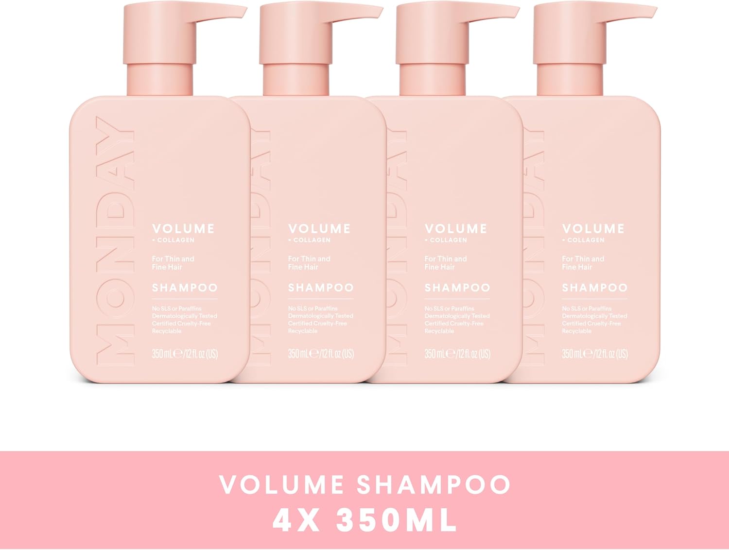 Monday Haircare 4 X 350 Ml Volume Shampoo With Hydrolysed Collagen & Macadamia Oil For Thin, Fine & Flat Hair