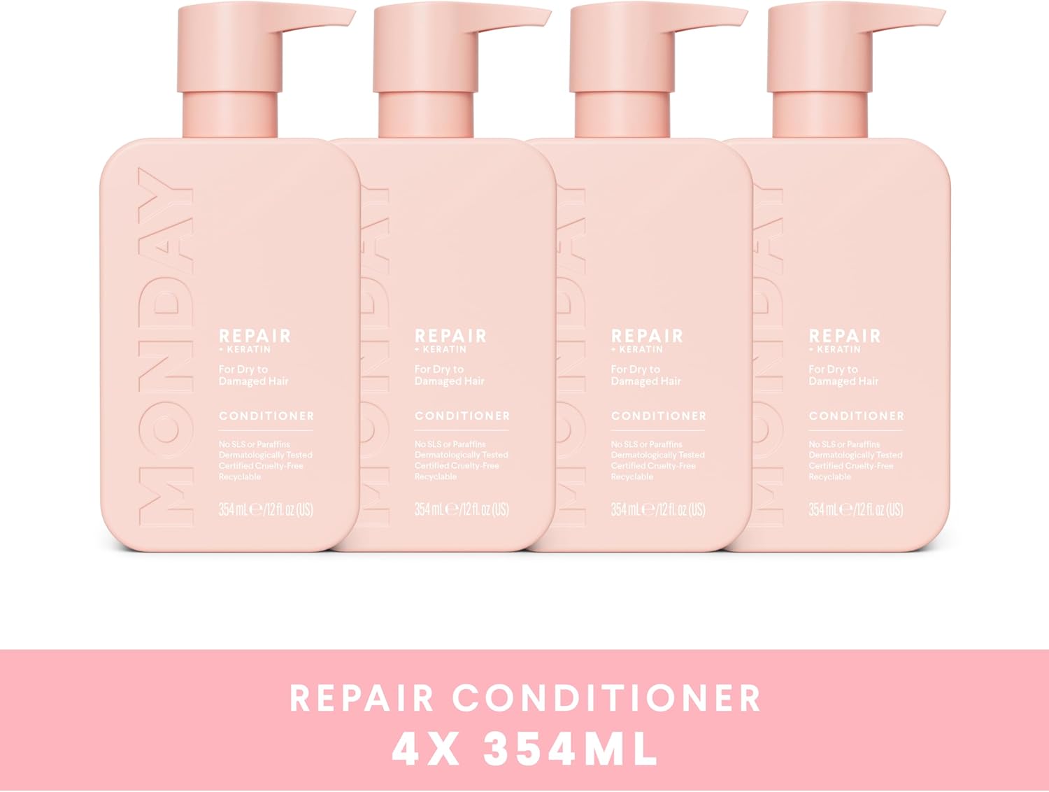 Monday Haircare 4 X 354 Ml Repair Shampoo With Keratin, Argan Oil & Cocoa Butter For Dry To Damaged Hair