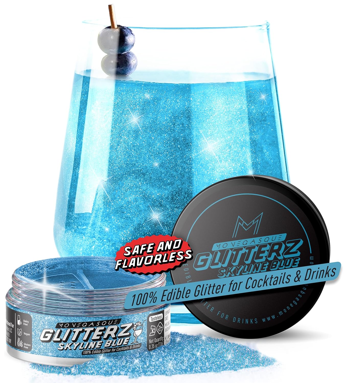 Monégasque Blue Edible Glitter For Cocktails 10G - Halloween Skyline Blue Drink Glitter - Edible Glitter Blue - Blue Edible Glitter For Drinks - Blue Glitter Edible - Edible Blue Glitter Blue Fondant