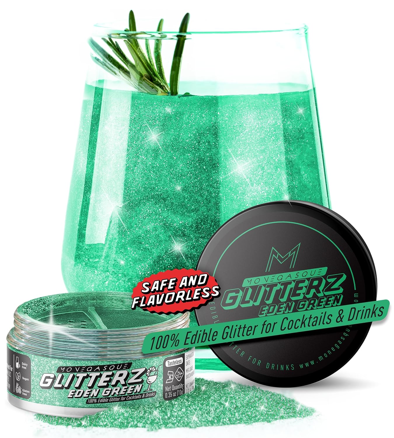 Monégasque Green Edible Glitter Green 10G - Halloween Green Edible Glitter For Drinks Green - Edible Glitter For Cocktails Green Edible Green Glitter For Drinks - Green Drink Glitter & Green Drink Dye