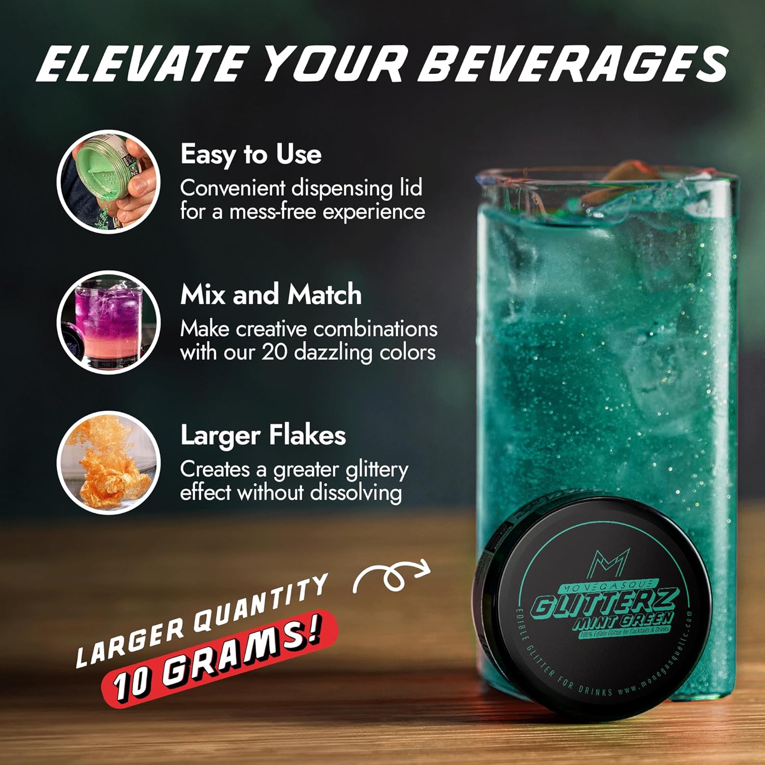 Versatile, Easy, & Mess-Free – Effortlessly Enhance Any Dish Or Drink. Simply Sprinkle Monégasque Glitterz Onto Cocktails Or Desserts For A Dazzling Effect. With 20 Vibrant Colors, It'S Perfect For Any Event, Keeping Your Creations Stunningly Fresh