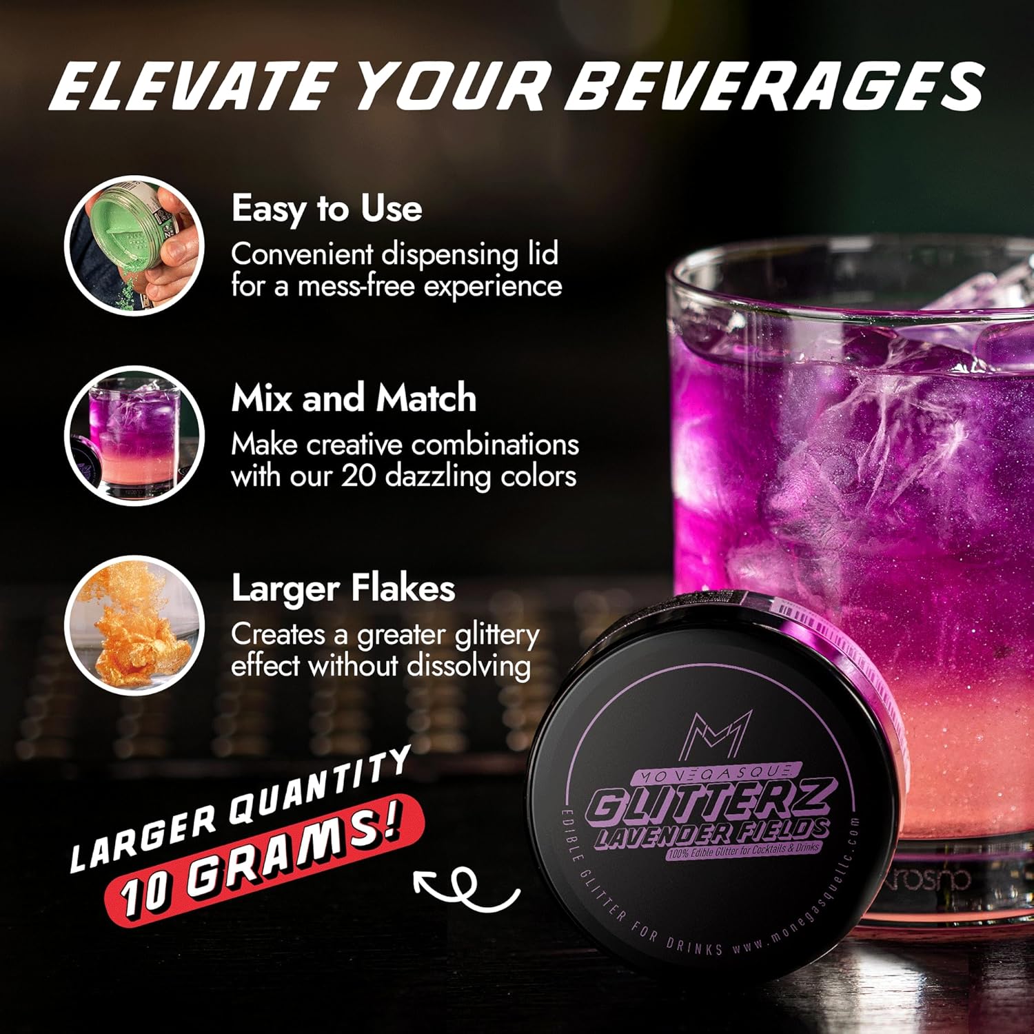 Versatile, Easy, & Mess-Free – Effortlessly Enhance Any Dish Or Drink. Simply Sprinkle Monégasque Glitterz Onto Cocktails Or Desserts For A Dazzling Effect. With 20 Vibrant Colors, It'S Perfect For Any Event, Keeping Your Creations Stunningly Fresh