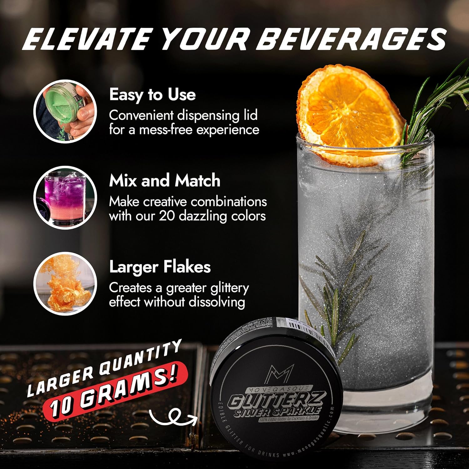 Versatile, Easy, & Mess-Free – Effortlessly Enhance Any Dish Or Drink. Simply Sprinkle Monégasque Glitterz Onto Cocktails Or Desserts For A Dazzling Effect. With 20 Vibrant Colors, It'S Perfect For Any Event, Keeping Your Creations Stunningly Fresh