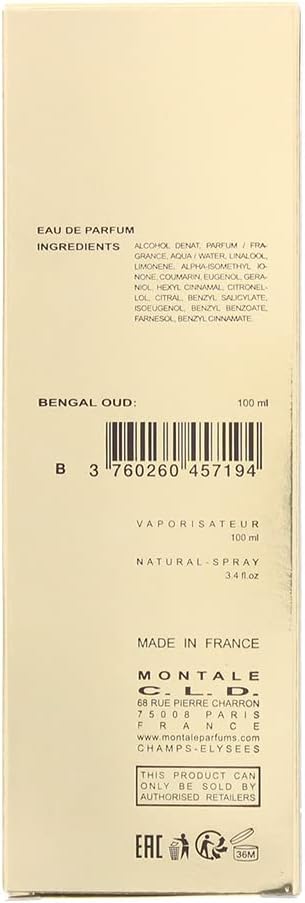 Product Description Montale Bengal Oud Eau De Parfum 100ml Ingredients Denatured Alcohol, Fragrance, Water (Aqua), Ethylhexyl Methoxycinnamate, Butyl Methoxydibenzoylmethane, Ethylhexyl Salicylate, Benzyl Alcohol, Benzyl Benzoate, Benzyl Cinnamate, Benzyl Salicylate, P.when('A').execute(function(A) { A.on('a:expander:toggle_description:toggle:collapse', function(data) { window.scroll(0, data.expander.$expander[0].offsetTop-100); }); }); Directions stay away from kids See more,A woody floral musk fragrance for women and men,Top notes: agarwood, bergamot and bitter orange