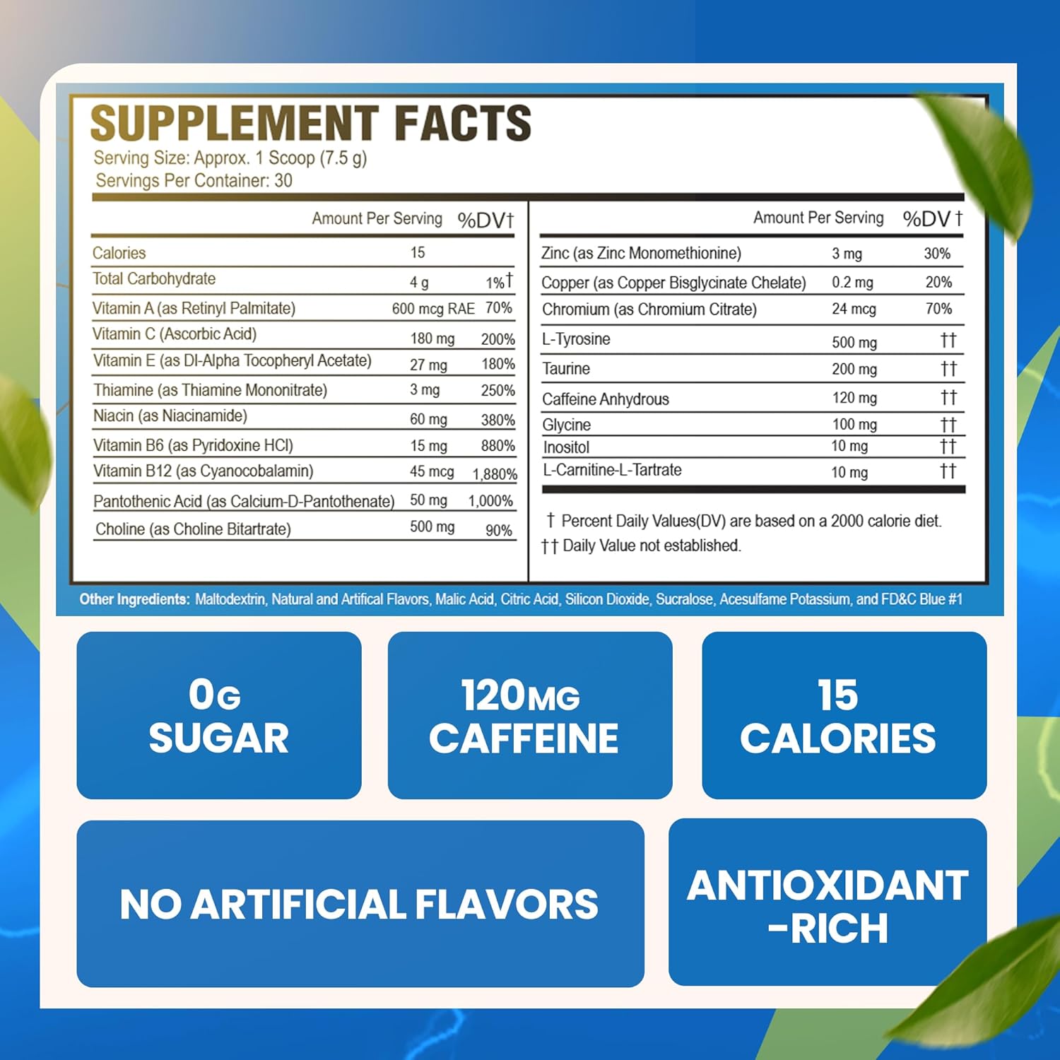 Morning Buzz Energy Drink Powder - Energy Boost Drink Mix - Sugar-Free Energy With Antioxidants - Morning Kickstart And Sports Nutrition Endurance Product - 30 Servings, Blue Raspberry, 8 Ounces