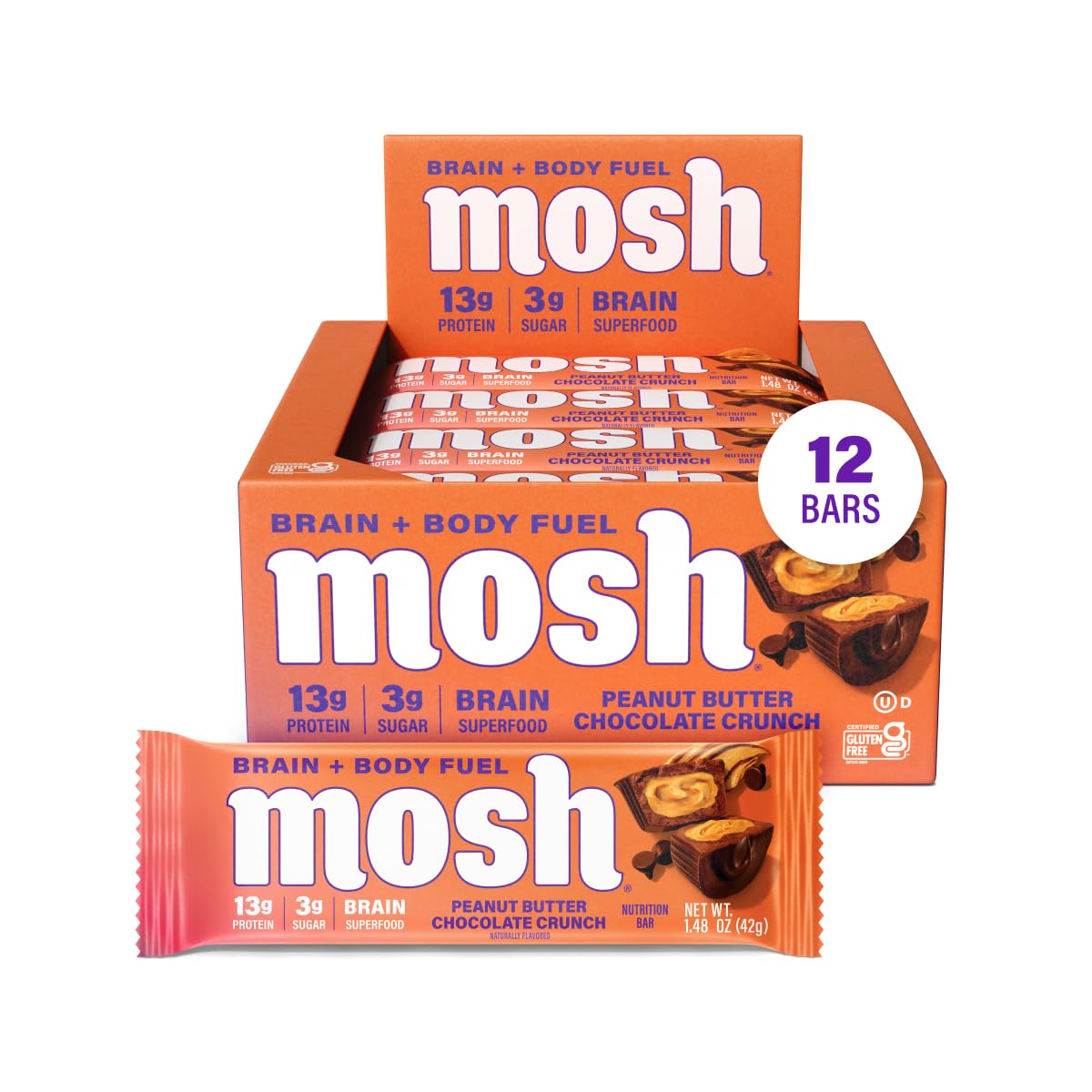 Mosh Peanut Butter Chocolate Keto Protein Bars, High Protein, Gluten Free, Brain Healthy Snack With Ashwagandha And Lions Mane, 12 Count