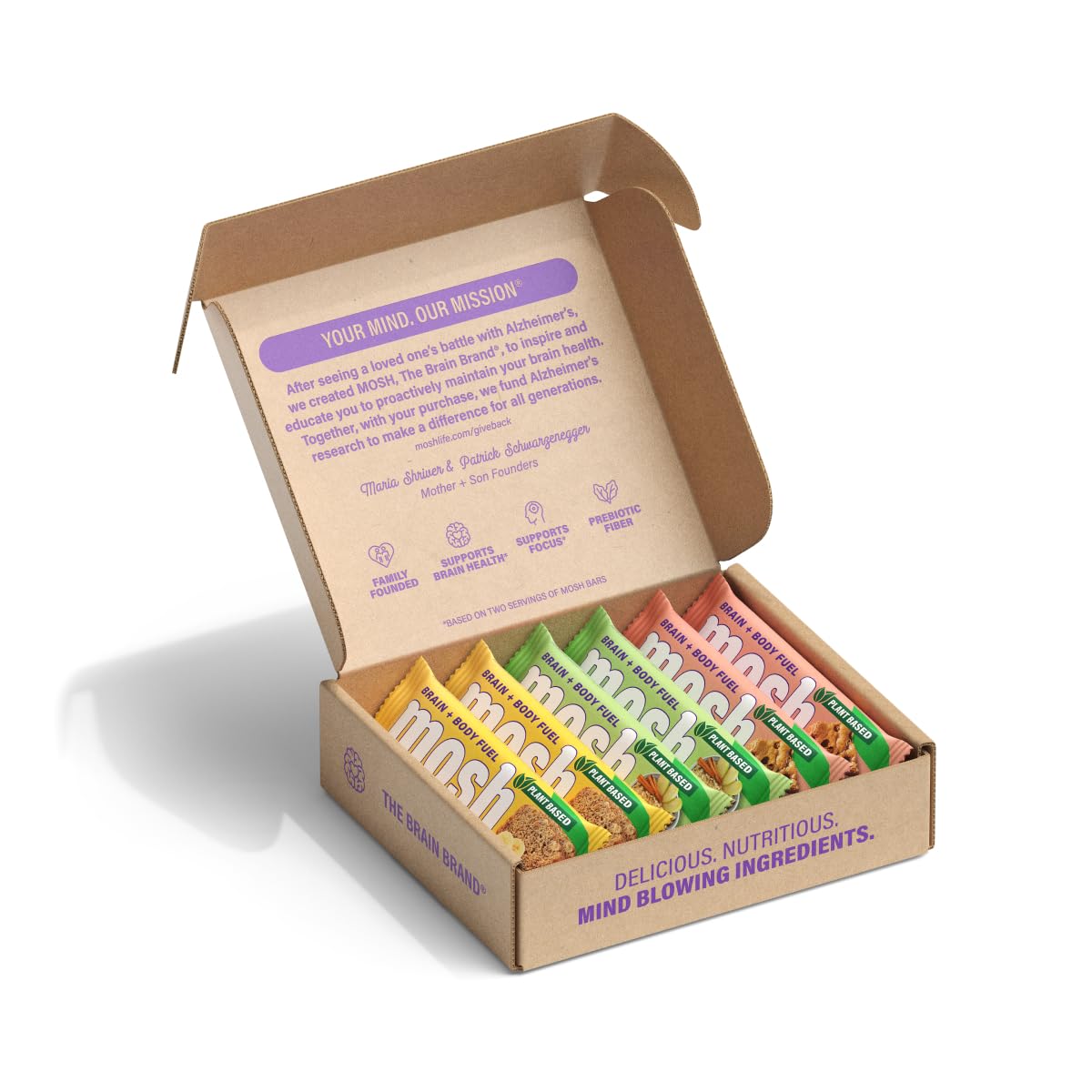 Mosh Variety Pack Plant Based Keto Protein Bars, High Protein, Gluten Free, Brain Healthy Snack With Ashwagandha, Lion'S Mane, And Omega 3, 6 Count