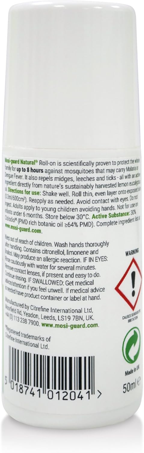 Product Description Product Description Mosi-guard natural is an effective mosquito repellent, midge repellent and general insect repellent that helps to repel biting insects. This helps prevent well known related diseases. Biting insects spread other diseases which you can read about in insects and diseases. Ingredients 30% Citriodiol, Aqua, Diisopropyl Adipate, Steareth-21, PEG-8 Stearate, Cetearyl Alcohol, Disodium EDTA, Sodium Lactate Aqua, C18-22 Hydroxyalkyl Hydroxypropyl Guar, hydrogenatedpolydecene, Sodium Polyacryloyldimethyl TAURATE, trideceth-10, Lactic acid Aqua. See all Product description. Ingredients 30% Citriodiol®, Aqua, Diisopropyl Adipate, Steareth-21, PEG-8 Distearate, Cetearyl Alcohol, Disodium EDTA, Sodium Lactate Aqua, C18-22 Hydroxyalkyl Hydroxypropyl Guar, HydrogenatedPolydecene, Sodium Polyacryloyldimethyl Taurate, Trideceth-10, Lactic Acid Aqua. P.when('A').execute(function(A) { A.on('a:expander:toggle_description:toggle:collapse', function(data) { window.scroll(0, data.expander.$expander[0].offsetTop-100); }); }); Box Contains Product See more,Protected for up to 8 hours in high and low risk areas. Lasts just as long and works just as well as synthetic repellents,Repels mosquitoes, midges, ticks, sand flies, land leeches, black flies, stable flies,A plant based and depth free alternative to synthetic insect repellents,Number of items: 1