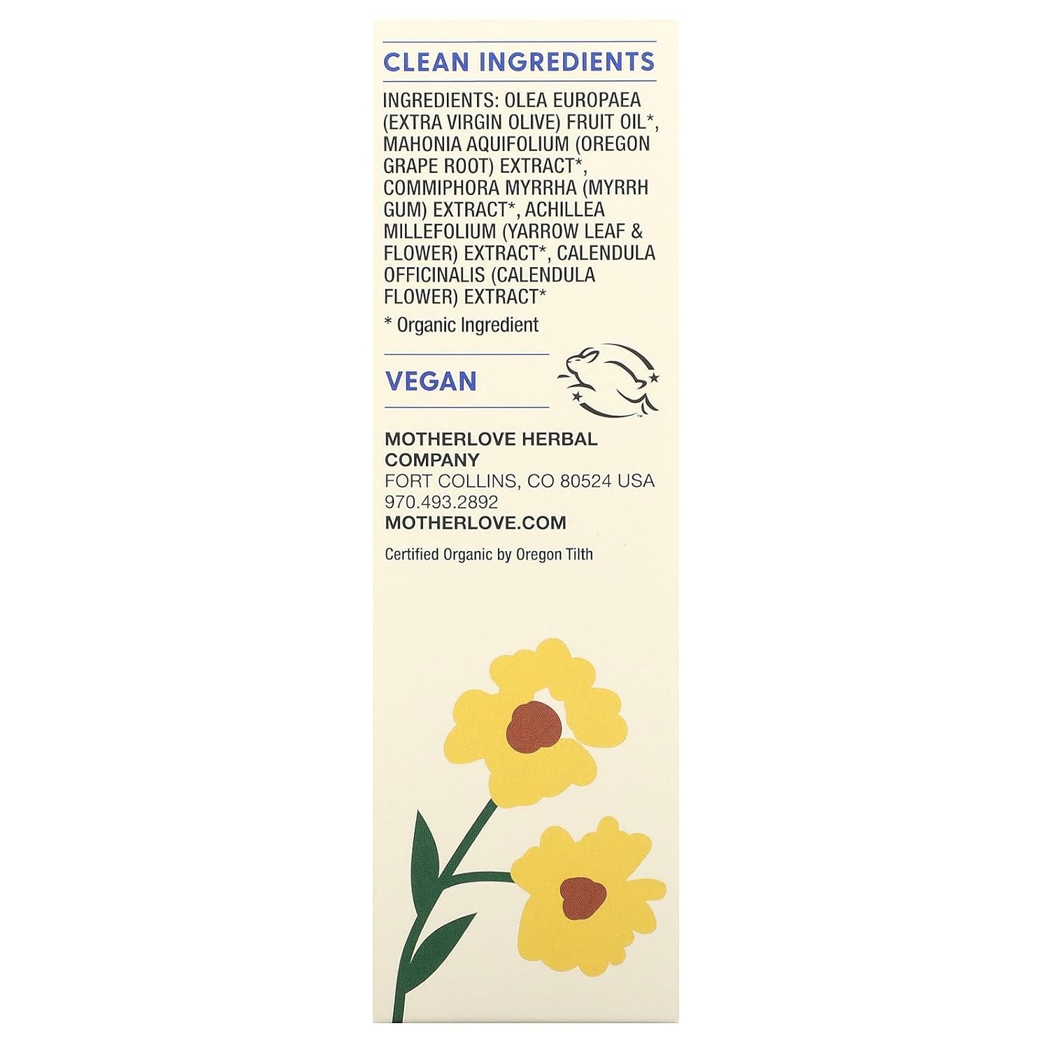 Clean Ingredients: Extra virgin olive oil, Oregon grape root, myrrh gum, yarrow herb, and calendula flower. All natural and organic. Nothing else