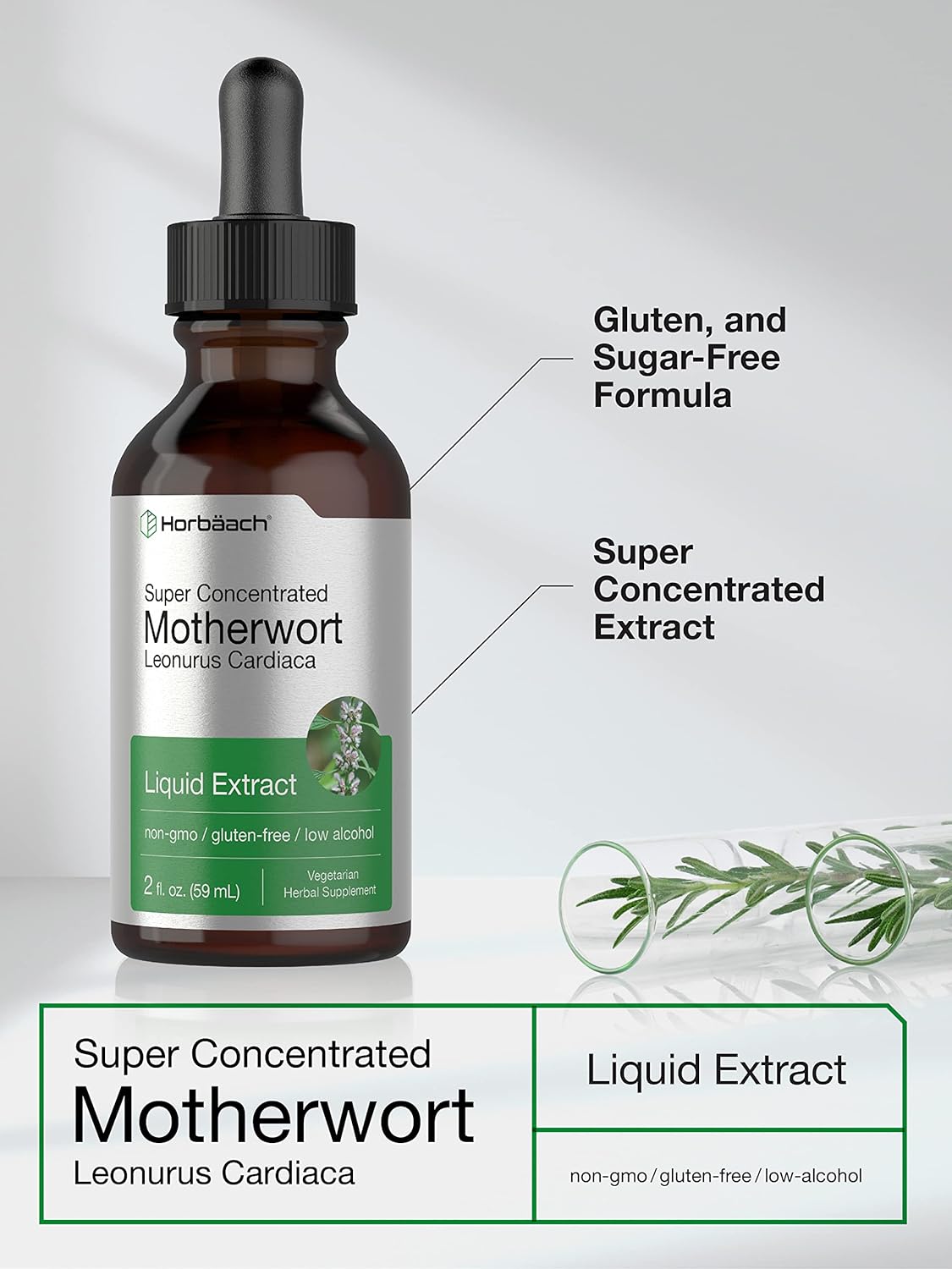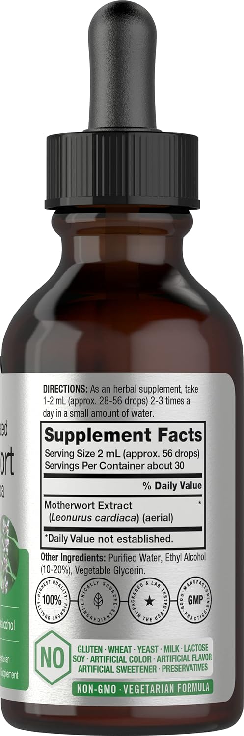 DESCRIPTION : Motherwort Herb Extract Tincture | 2 oz | Low Alcohol Liquid | Vegetarian | Leonurus Cardiaca | Non-GMO, Gluten Free | by Horbaach