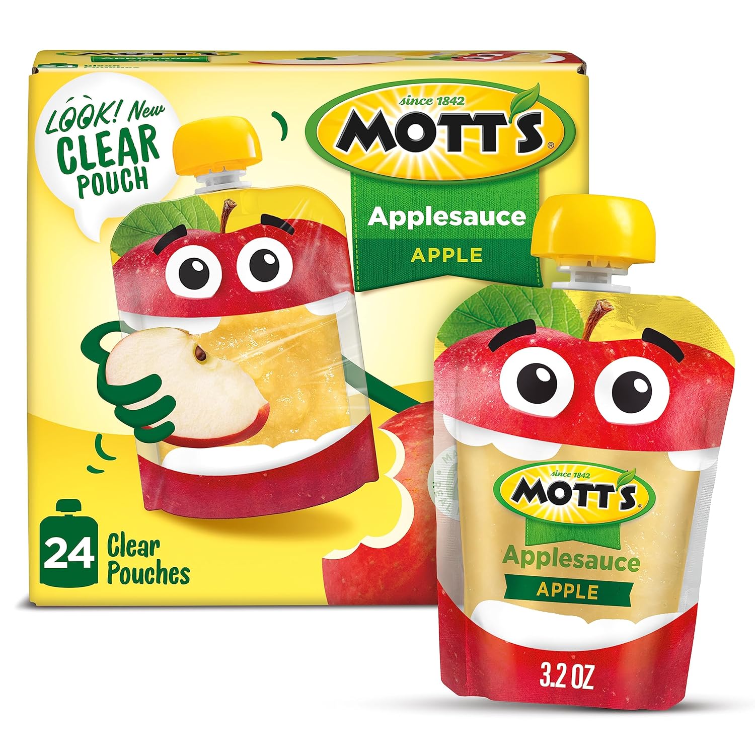 Mott'S Applesauce, 3.2 Oz Clear Pouches, 24 Count (6 Packs Of 4), No Artificial Flavors, Good Source Of Vitamin C, Nutritious Option For The Whole Family