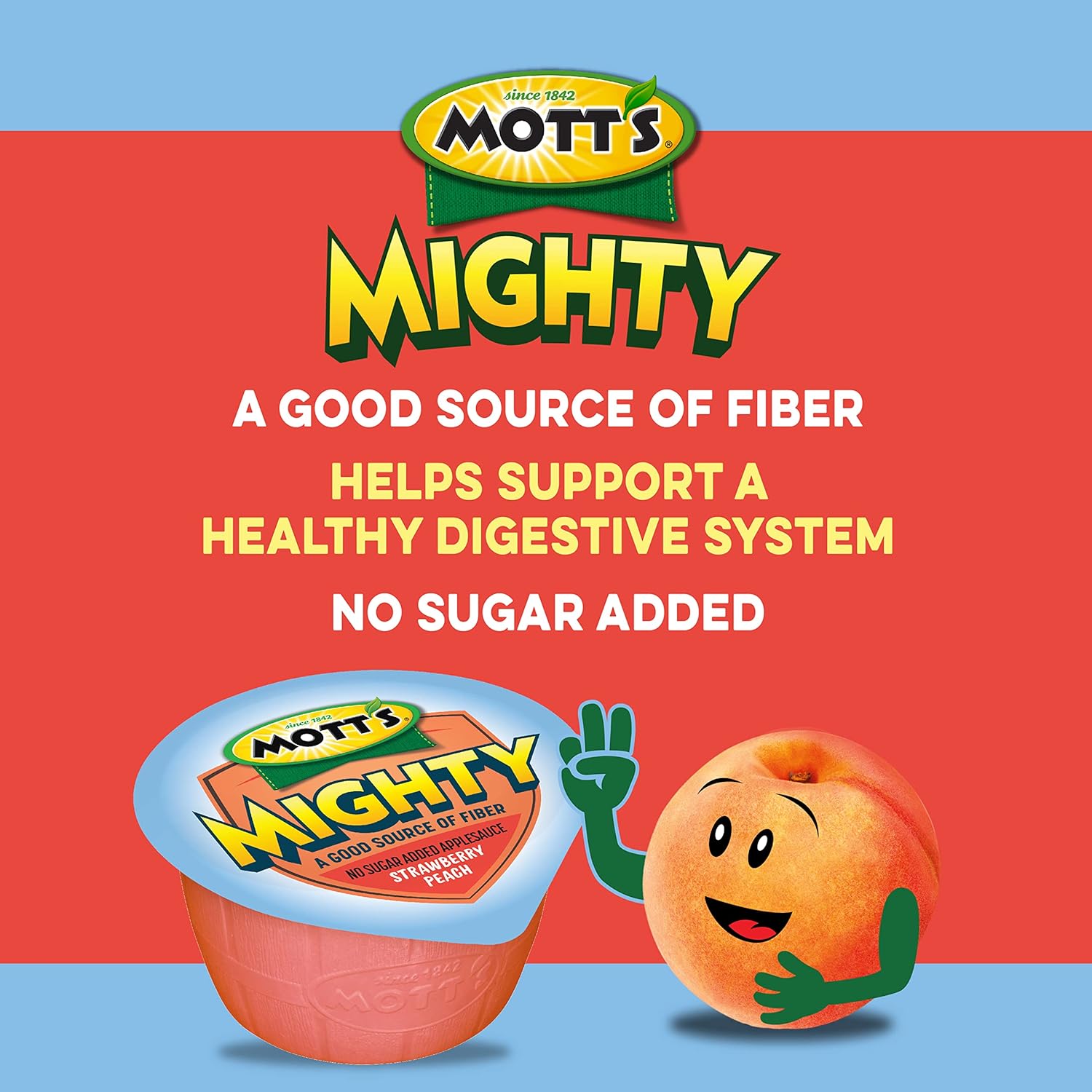 Mott'S Mighty Strawberry Peach Applesauce, 3.9 Oz Cups, 72 Count (12 Packs Of 6), No Sugar Added, Good Source Of Fiber, Supports A Healthy Digestive System, Gluten-Free, Kosher