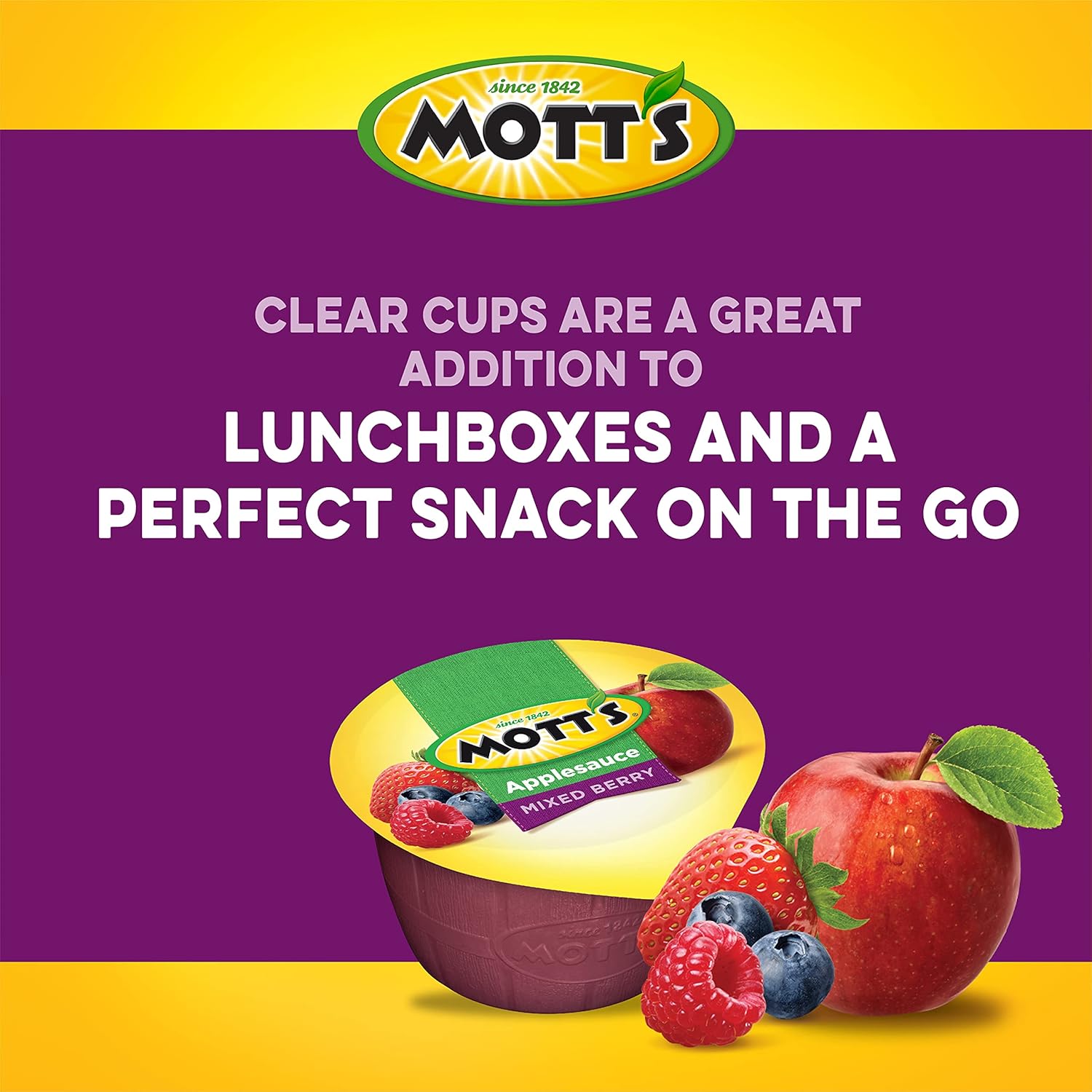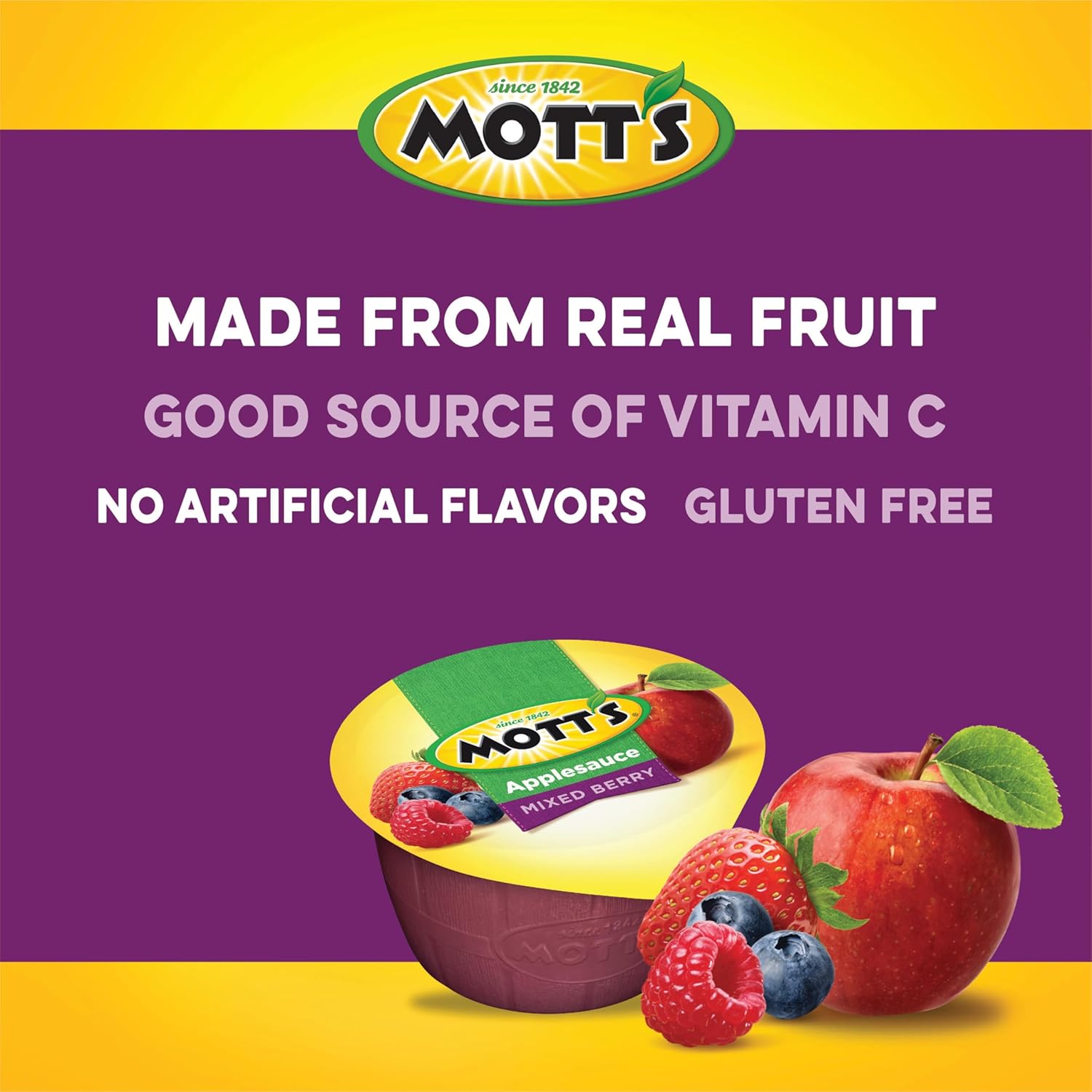 Mott'S Mixed Berry Applesauce, 4 Oz Cups, 72 Count (12 Packs Of 6), No Artificial Flavors, Good Source Of Vitamin C, Nutritious Option For The Whole Family