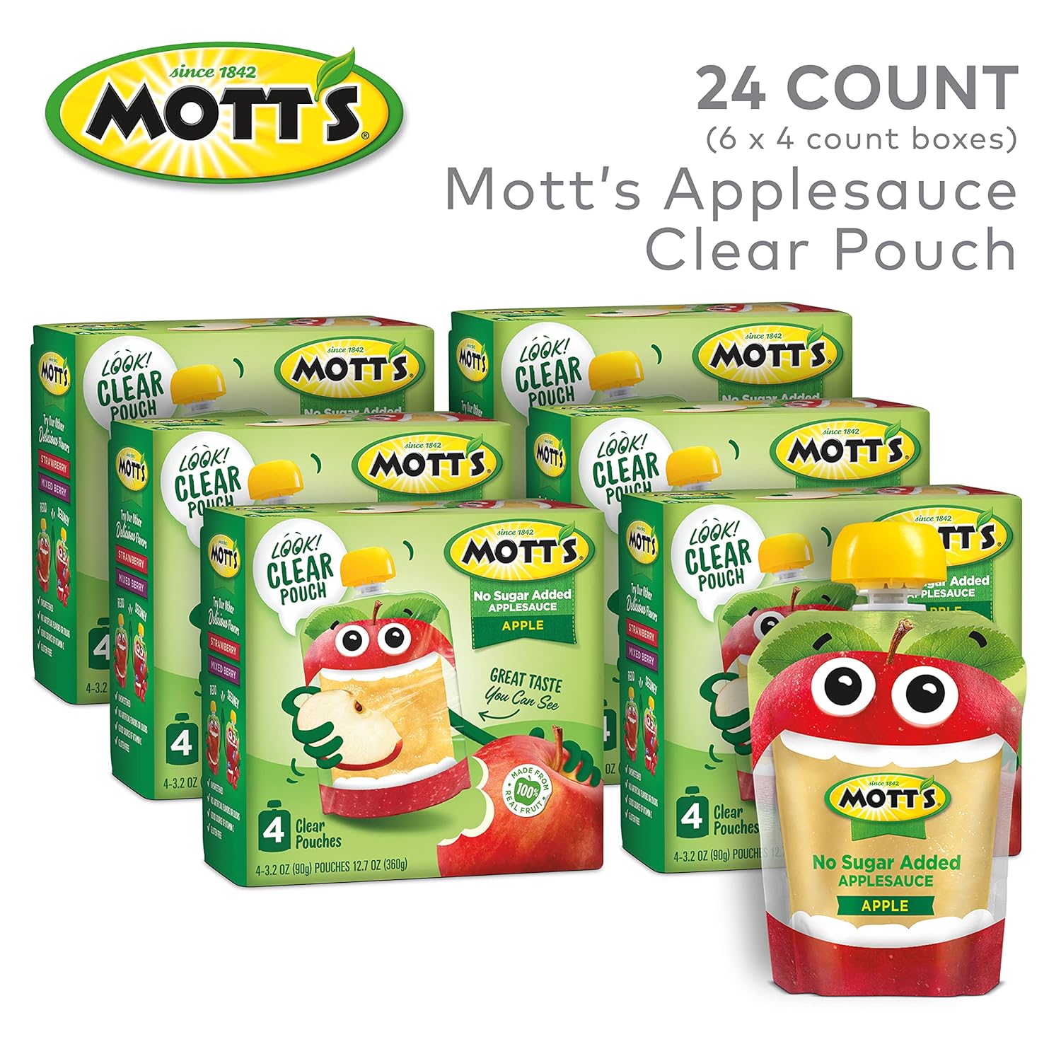 Mott'S No Sugar Added Applesauce, 3.2 Oz Clear Pouches, 24 Count (6 Packs Of 4), Good Source Of Vitamin C, No Artificial Flavors