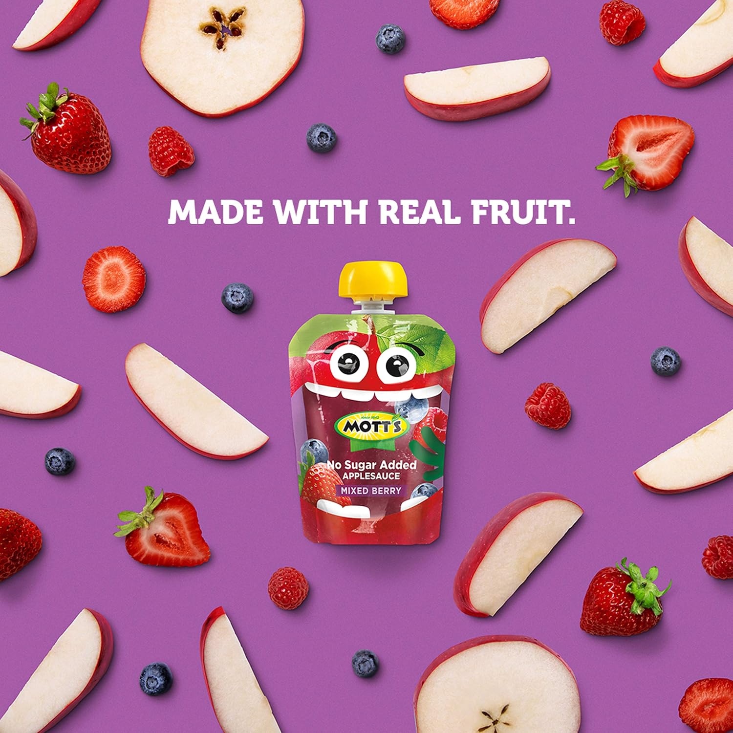 The Original, Delicious Treat, Mott'S No Sugar Added Mixed Berry Applesauce Pouches Are The Perfect Snack Or Meal Companion. It'S A Good Source Of Vitamin C And Free Of Cholesterol. Bringing The Best Of The Orchard To Your Household, Mott'S Helps Families Enjoy Delicious Fruit Goodness Every Day. The Apple Juice And Sauce Brand Is Dedicated To Giving Moms Easy Ways To Help Their Families Be Their Very Best. Mott'S Has A Strong Heritage And Has Been The Trusted Apple Juice And Sauce Brand Since 1842. Mott'S Hold The Apples To A Very High Standard, That'S Why The Products Pack Lots Of Delicious Fruit Flavor From Ripe Apples Into Every Serving. Enjoy Mott'S In A Variety Of Pack Types Including Pouches, Cups, Jugs, Juice Boxes And Jars; So Whether You'Re Home With Your Family Or On-The-Go And In Need Of A Snack, Mott'S Has A Product For You. You Won'T Find Any Artificial Flavors In Mott'S Products, So You Can Feel Good About Making Healthy Choices