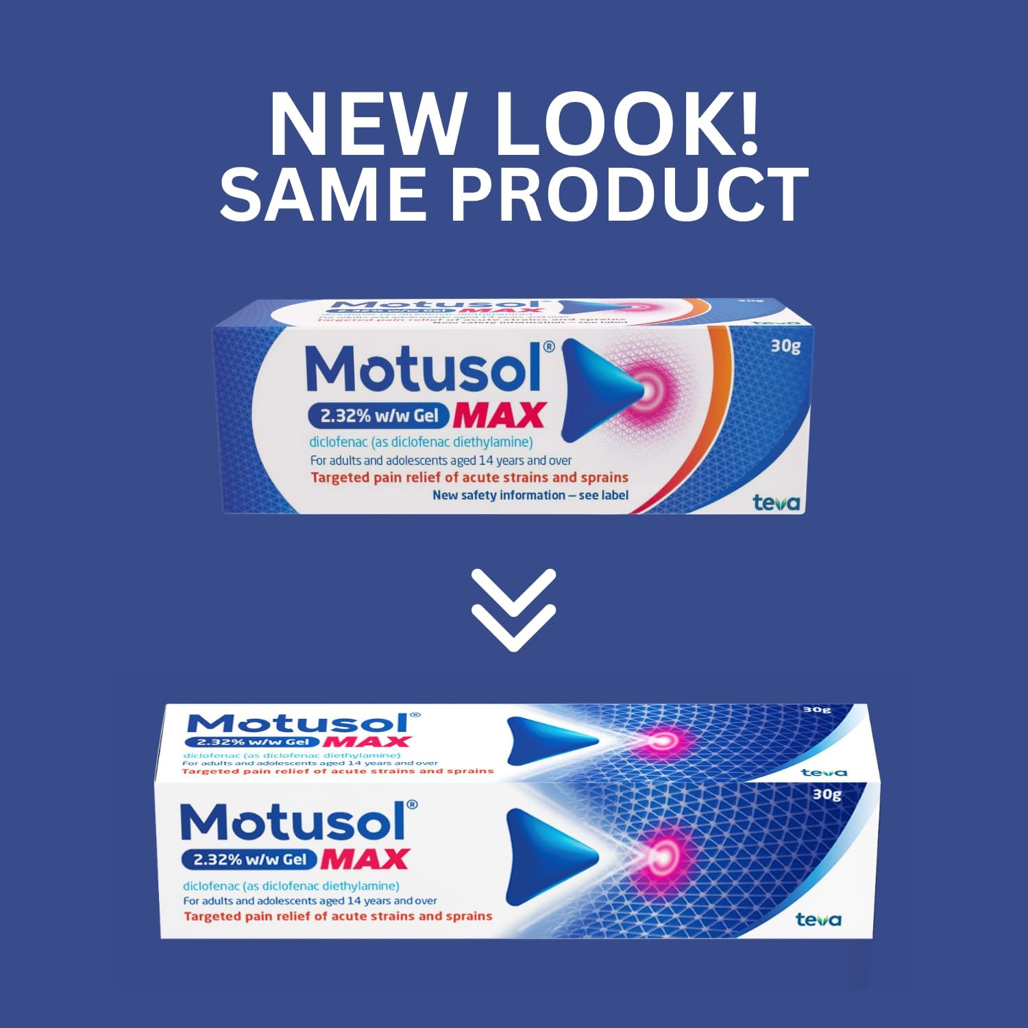 Product Description Product description: Target pain and take control of your day with Motusol Max 2.32% w/w Gel. This topical gel works by targeting pain directly at the source, reduces swelling and speeds up recovery. When to use Motusol Max 2.32% w/w Gel Motusol is intended for the local symptomatic treatment of pain of muscles and joints caused by e.g. sprains or contusions following blunt trauma (sports injuries); back strain, knee strain, ankle strains and sprains. How to use Motusol Max 2.32% w/w Gel Motusol is for cutaneous use. Apply the gel to the affected parts of the body thinly and rub gently into the skin. Unless the hands are the site being treated, wash your hands after rubbing in the gel. The duration of use depends on the symptoms and the underlying disease. Motusol should not be used longer than 1 week without medical advice. If symptoms worsen or do not improve after 3- 5 days, a doctor should be consulted. Always use this medicine exactly as described in this leaflet or as your doctor or pharmacist have told you. Check with your doctor or pharmacist if you are not sure. Ingredients Ingredients: The active substance is diclofenac diethylamine. 1 g contains 23.2 mg diclofenac diethylamine corresponding to 20 mg diclofenac sodium. The other ingredients are isopropyl alcohol, propylene glycol (E1520), cocoyl caprylocaprate, liquid paraffin, carbomer, macrogol cetostearyl ether, diethylamine, oleic acid (E570), butylhydroxytoluene (E321), fragrance (containing citronellol, geraniol, benzyl alcohol (E1519), linalool, limonene, citral, farnesol, coumarin, eugenol), purified water P.when('A').execute(function(A) { A.on('a:expander:toggle_description:toggle:collapse', function(data) { window.scroll(0, data.expander.$expander[0].offsetTop-100); }); }); Safety Warning DO NOT use Motusol: * if you are allergic to diclofenac or any of the other ingredients of this medicine, *if you have ever developed breathing problems (asthma, bronchospasm), hives, runny nose, or swelling of the face or tongue after taking/using aspirin or another non-steroidal anti-inflammatory drug (e.g. ibuprofen), *on open injuries, inflammations or infections of the skin as well as on eczema or around eyes, nose or mouth, *in the last trimester of pregnancy, *in children and adolescents under 14 years of age. Read all of the patient leaflet carefully before you start using this medicine because it contains important information for you. Manufacturer Contact Information Teva UK Limited, Castleford, WF10 5HX, UK. See more,Motusol’s most powerful formulation for joint and muscle pain, associated with strains, sprains and bruising,Effective pain relief and anti-inflammatory gel that targets pain directly at source,Fights inflammation and reduces swelling,The triple effect formula works in 3 ways to relieve joint & muscle pain*: target pain at the source, reduce swelling and speed up recovery,Contains diclofenac, an anti-inflammatory ingredient that helps relieve pain in muscles and joints*, such as: back strain, knee strain, hip strain, ankle strain or sprains,It comes with an easy grip cap to help you get easy access to the product,*Motusol Max is for the treatment of joint and muscle pain, when associated with strains, sprains and bruising. Motusol Max 2.32% w/w Gel contains diclofenac diethylamine. Always read the label