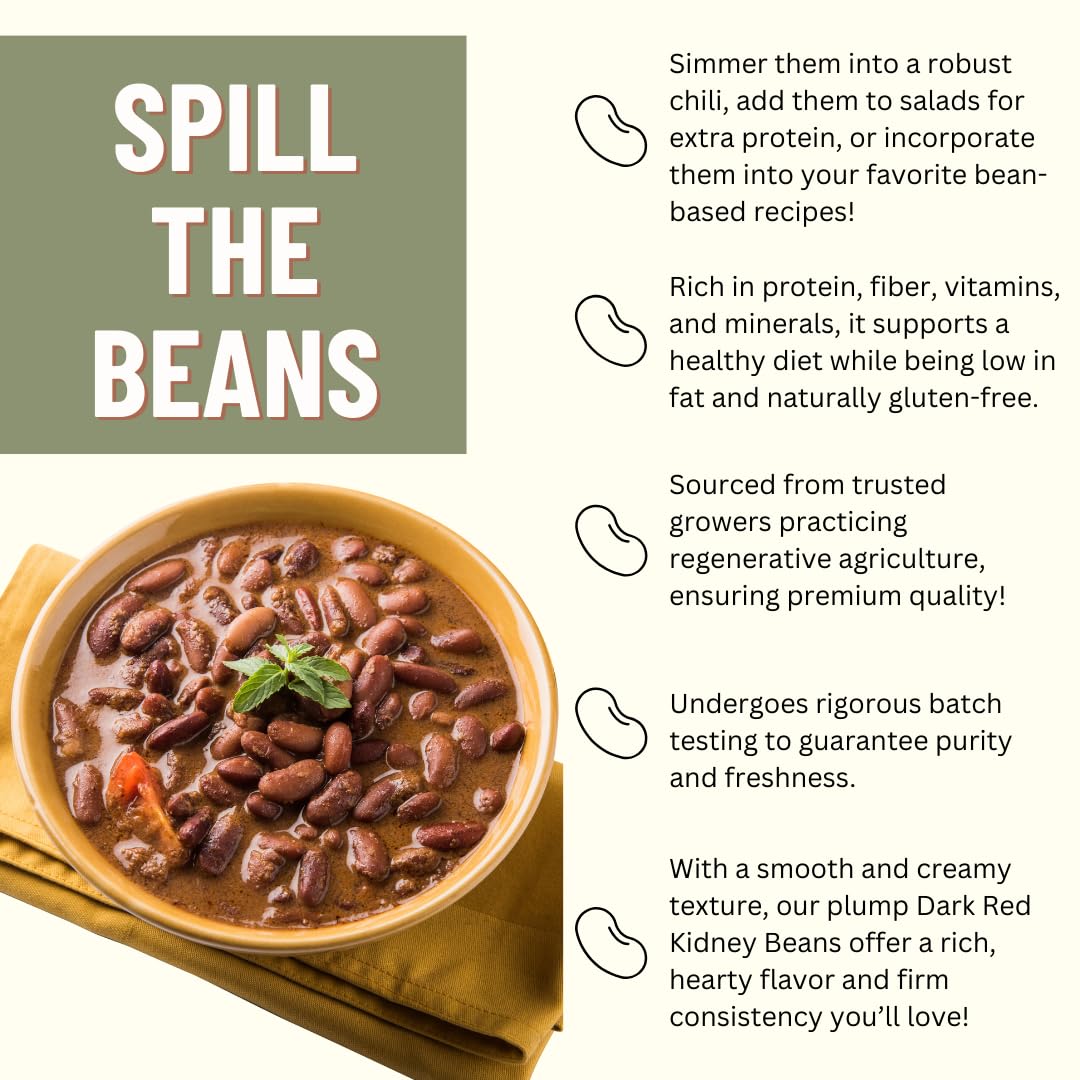 Dark Red Kidney beans hold their shape when cooked and absorb accompanying flavors very well