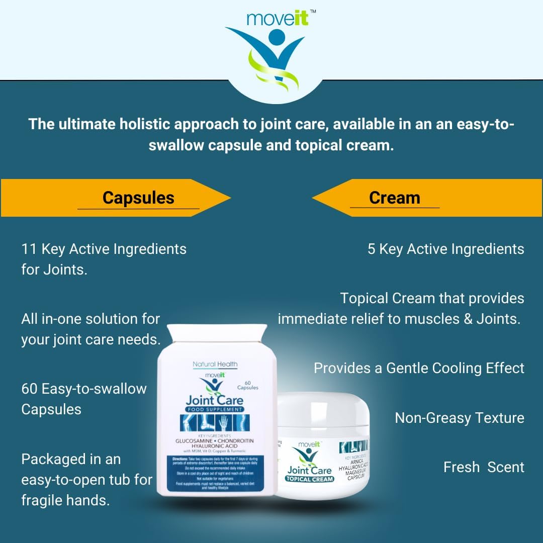Moveit Joint Care Supplement – 60 Capsules | Glucosamine, Chondroitin, Msm, Turmeric, Hyaluronic Acid, Vitamin D & Copper | Bone & Muscle Support For Mobility, Flexibility & Comfort - 2 Month Supply