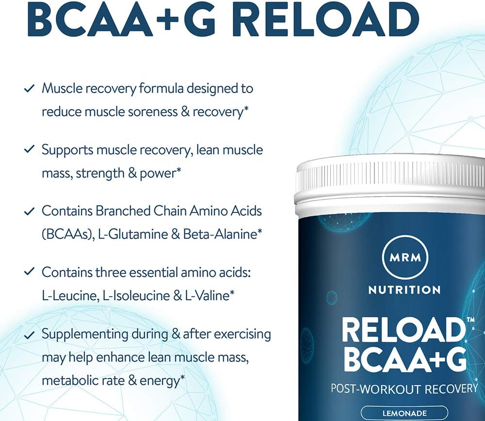 DESCRIPTION : MRM BCAA+G RELOAD Post-Workout Recovery β Lemon, 840g - 60 Servings Per Container
