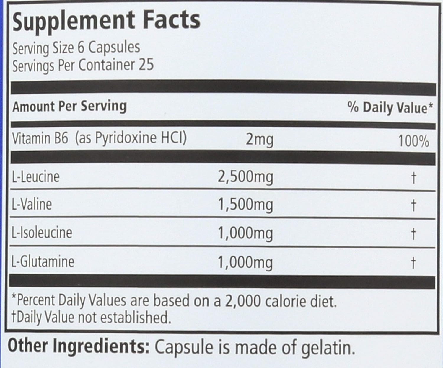 4 >RECOMMENDATIONS: Take 6 capsules per day during and/or after exercise to maintain metabolic rate and prevent muscle wasting