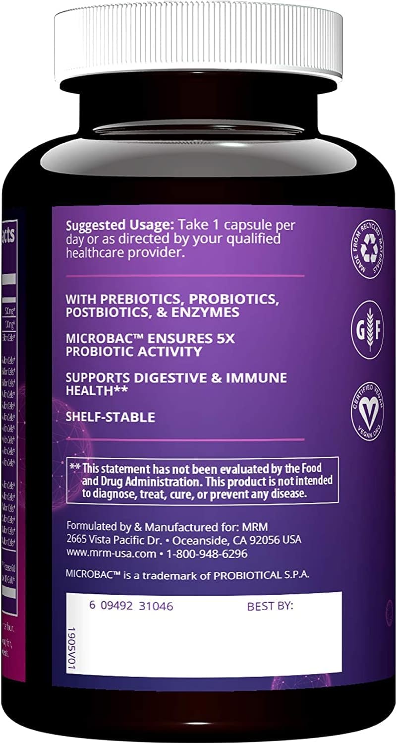 About this item DESIGNED FOR: Supporting a healthy digestive system with 16 different strains of bacteria. The strains that are used in this diverse blend include a range of bifido- and lactobacillus bacteria that are known to preferentially colonize the upper and lower gastrointestinal tract.** DIGESTIVE HEALTH: Our Daily Probiotics contain prebiotics and postbiotics to support the gut health of the entire gastrointestinal tract. PATENTED DELIVERY TECHNOLOGY: Our customized MICROBAC live transport system increases the stability and delivery of our probiotics, providing the colonization and activity of 25 billion cells to support your gut microbiome.** RECOMMENDATIONS: Take 1 capsule per day or as directed by your qualified healthcare provider CERTIFICATIONS: This product is Gluten-Free and Vegan. โบ See more product details,DESIGNED FOR: Supporting a healthy digestive system with 16 different strains of bacteria. The strains that are used in this diverse blend include a range of bifido- and lactobacillus bacteria that are known to preferentially colonize the upper and lower gastrointestinal tract,DIGESTIVE HEALTH: Our Daily Probiotics contain prebiotics and postbiotics to support the gut health of the entire gastrointestinal tract,PATENTED DELIVERY TECHNOLOGY: Our customized MICROBAC live transport system increases the stability and delivery of our probiotics, providing the colonization and activity of 25 billion cells to support your gut microbiome,RECOMMENDATIONS: Take 1 capsule per day or as directed by your qualified healthcare provider,CERTIFICATIONS: This product is Gluten-Free and Vegan
