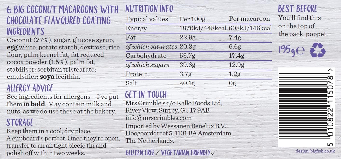 Mrs Crimble'S 6 Large Chocolate Macaroons, 195G, Brown
