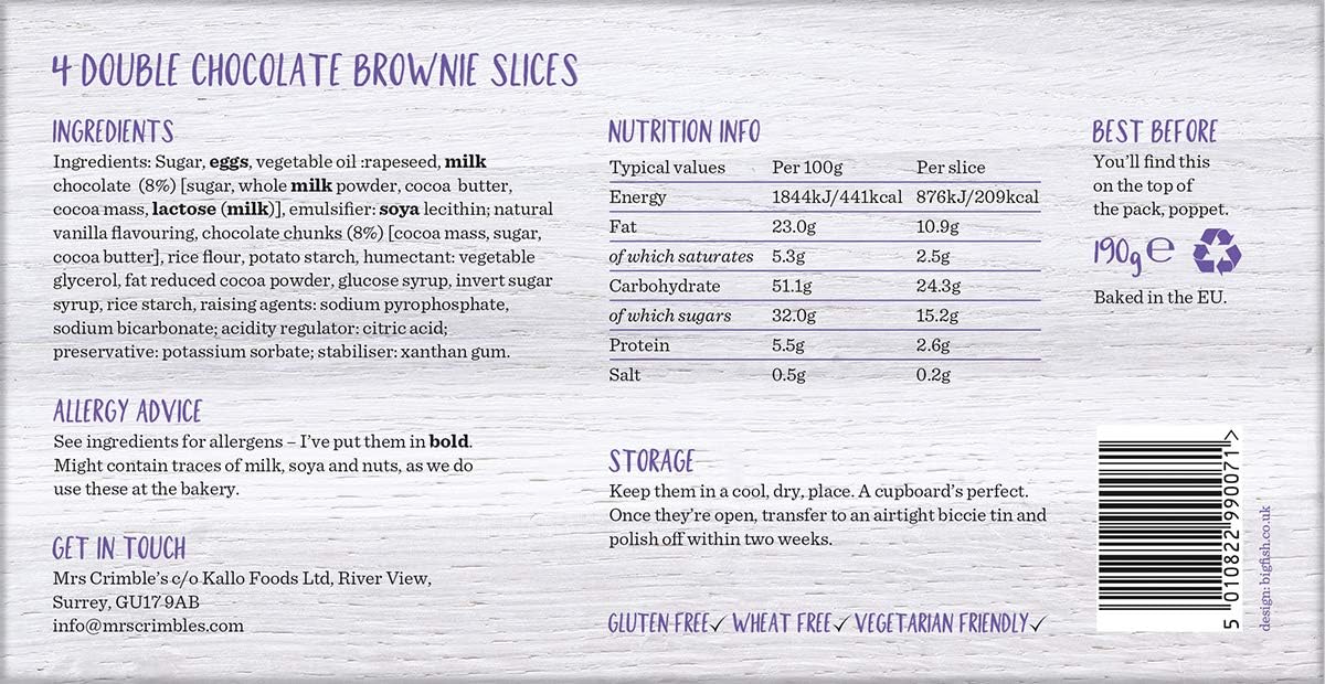 Mrs Crimble'S Gluten Free Double Choc Brownies, Premium Quality & Certified Free From Gluten, Wheat Free & Vegetarian Friendly, 9 Packs Of 4 (9 X 190G Multi Pack)