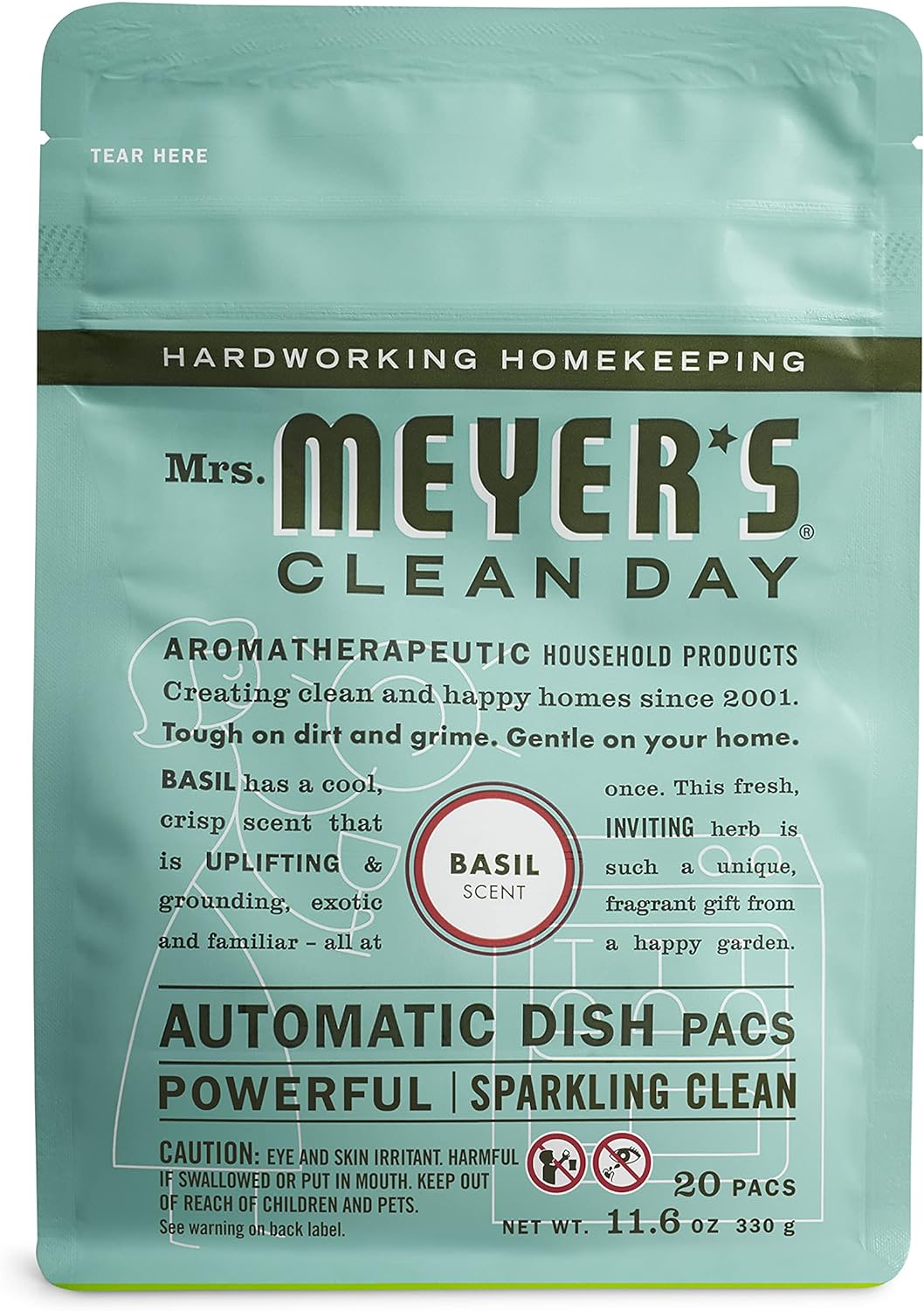 Mrs. Meyer'S Clean Day Automatic Dish Pillow Basil Detergent Pods, 12.7 Oz. 20 Count