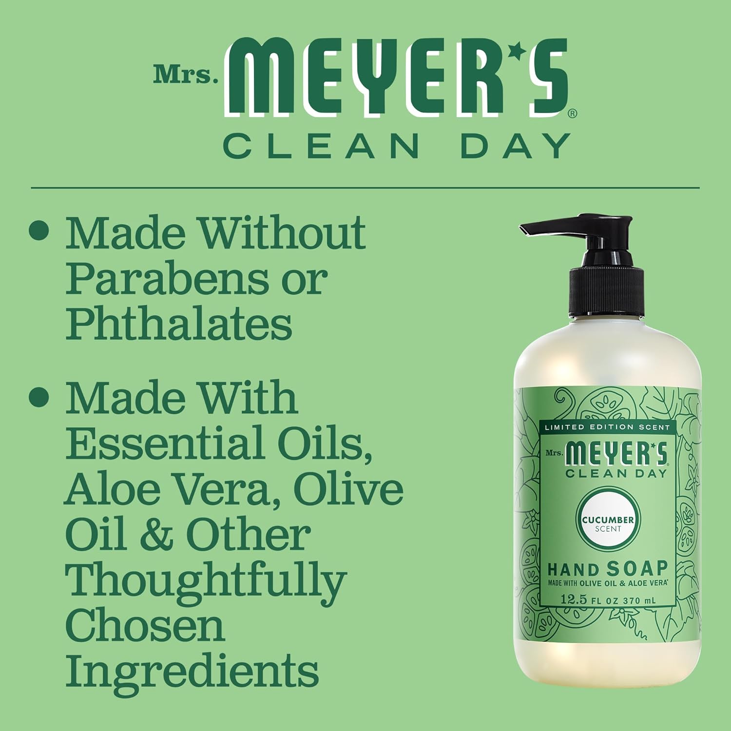 Mrs. Meyer'S Clean Day Liquid Hand Soap, Cruelty Free And Biodegradable Hand Wash Formula Made With Essential Oils, Cucumber Scent, 12.5 Ounce Bottle
