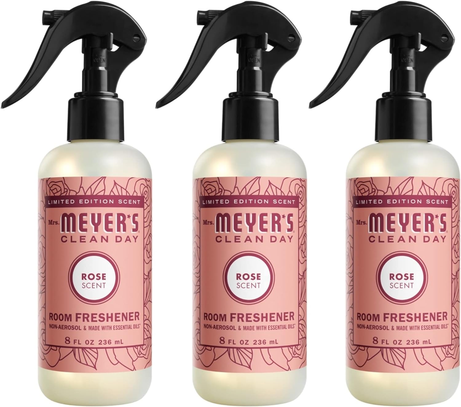 Mrs. Meyer’s Clean Day Rose air freshener spray is made with essential oils and other thoughtfully chosen ingredients, and gives your home instant freshening between cleaning days