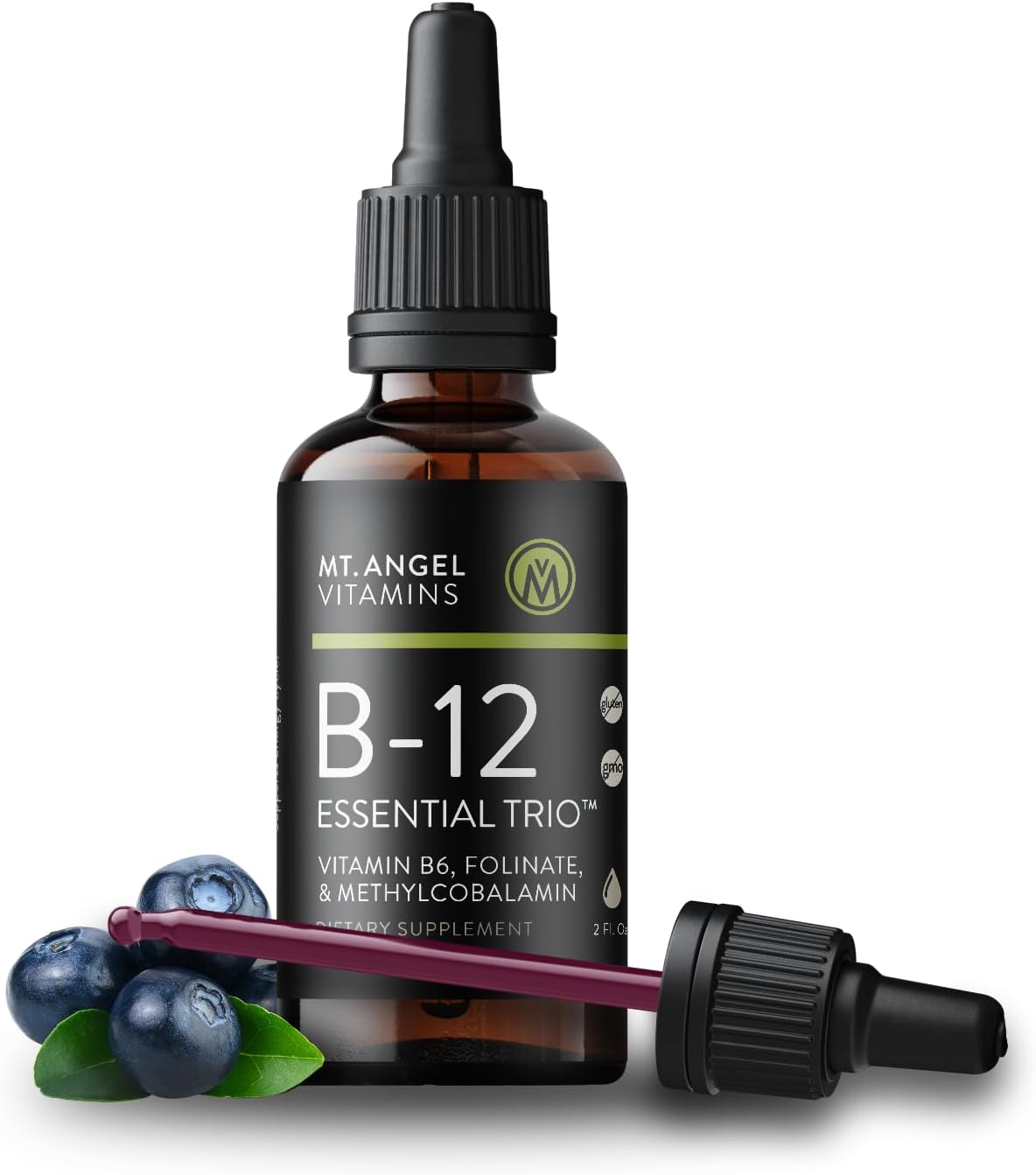 Mt. Angel Vitamins - B12 Essential Trio - Vegan Sublingual Drops With High-Potency Methyl B12, B6 & Folate - Easy Absorption Liquid - Non-Gmo, Made In Usa